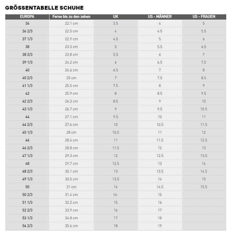 Größentabelle adidas Erwachsenenschuhe