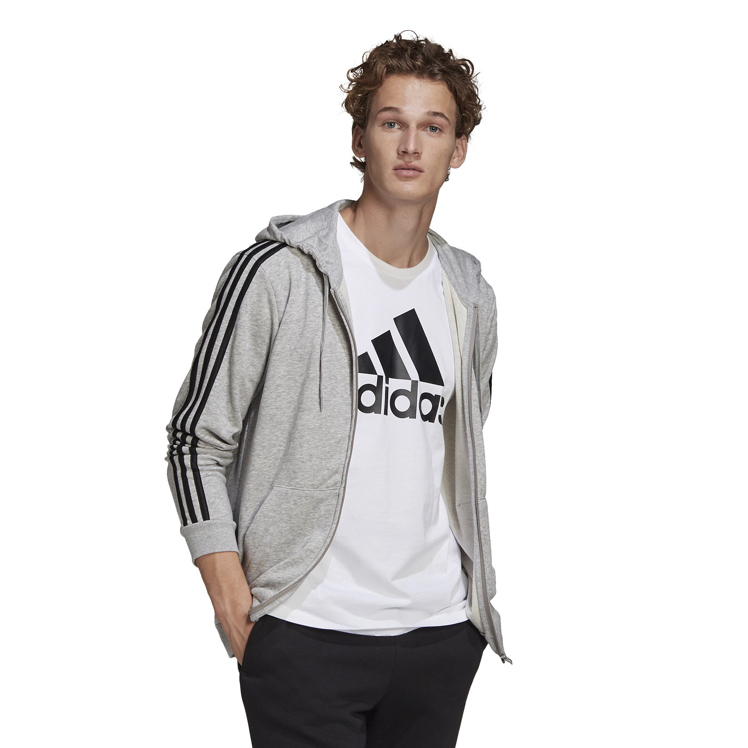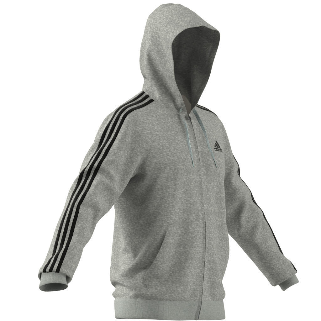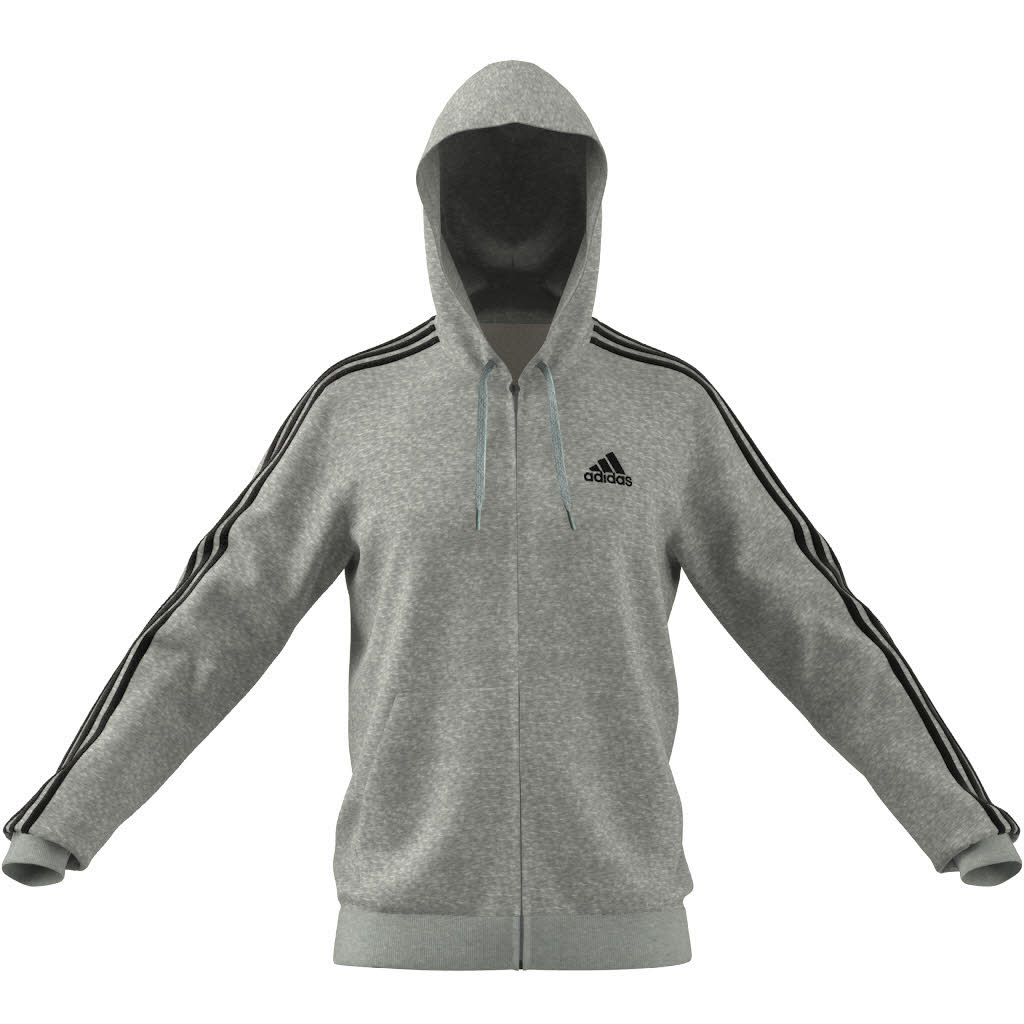 adidas Essentials French Terry 3-Streifen Herren Kapuzenjacke Freizeitjacke grau