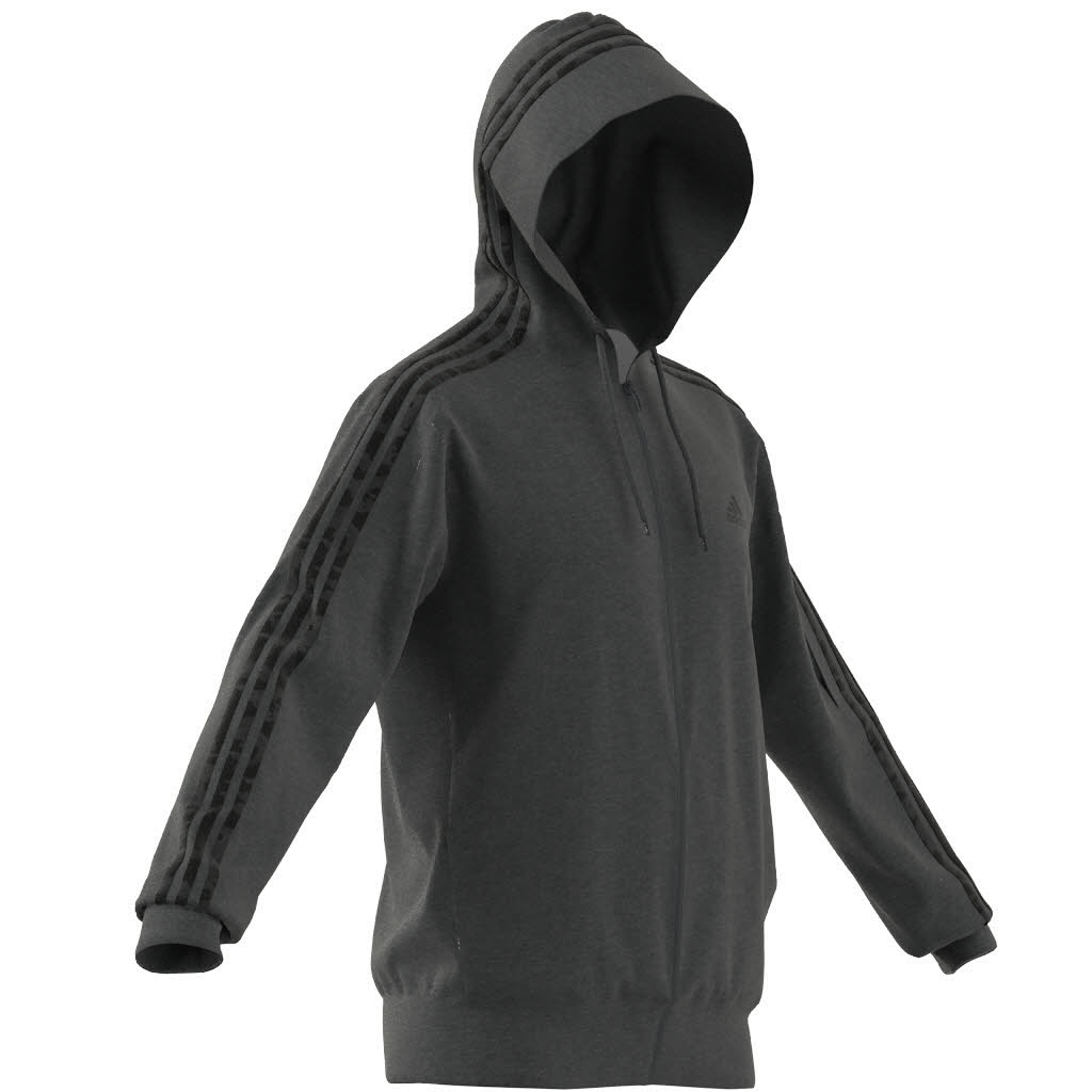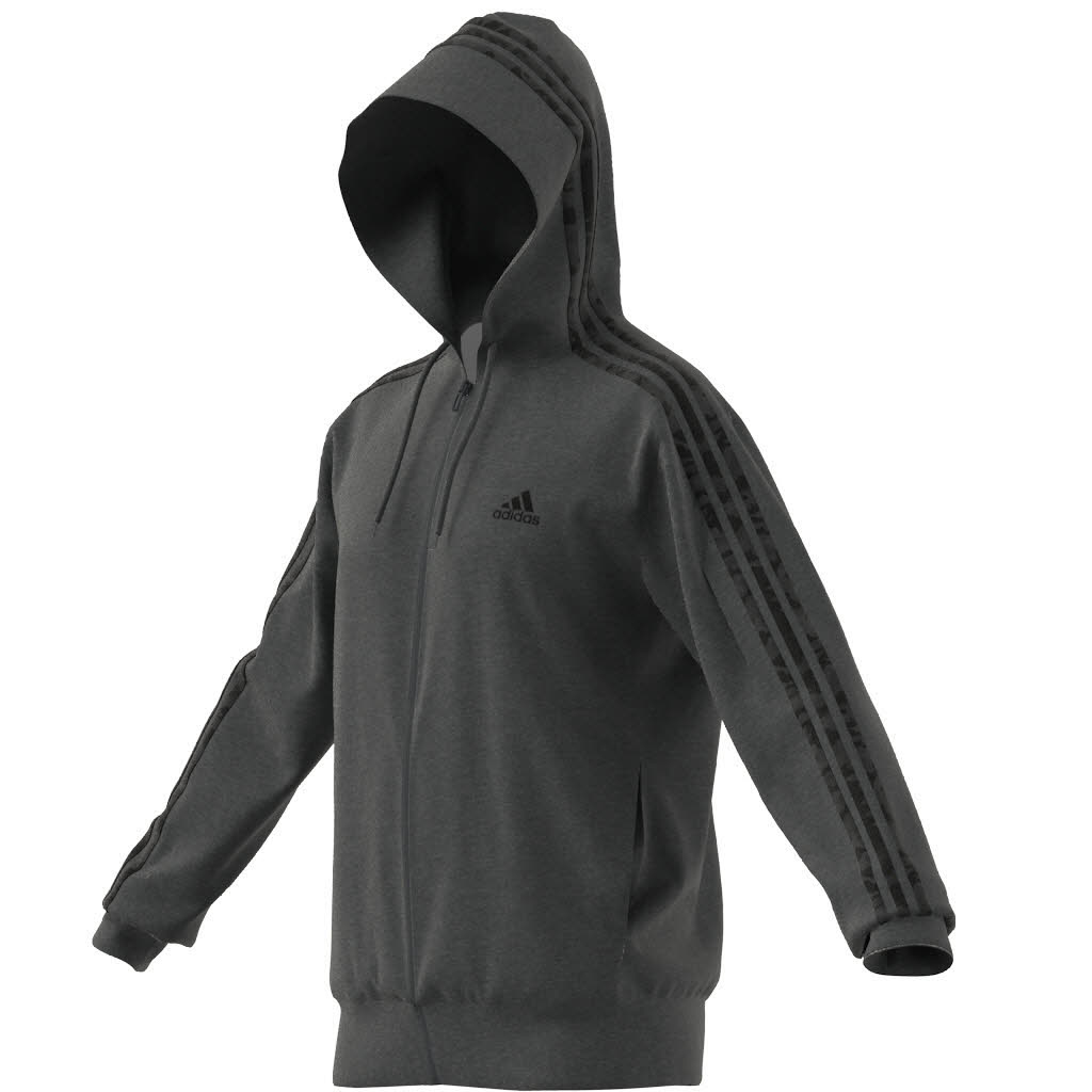 adidas M 3S FT FZ HD Herren Kapuzenjacke Trainingsweste grau NEU