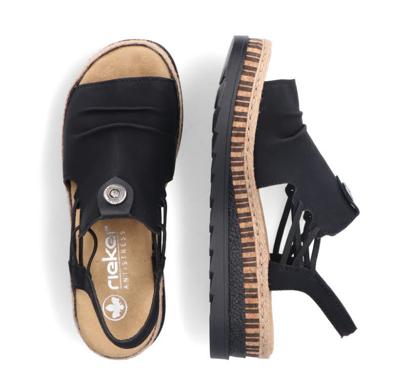 Rieker Damen Keilsandalette Sandale Modeschuh schwarz