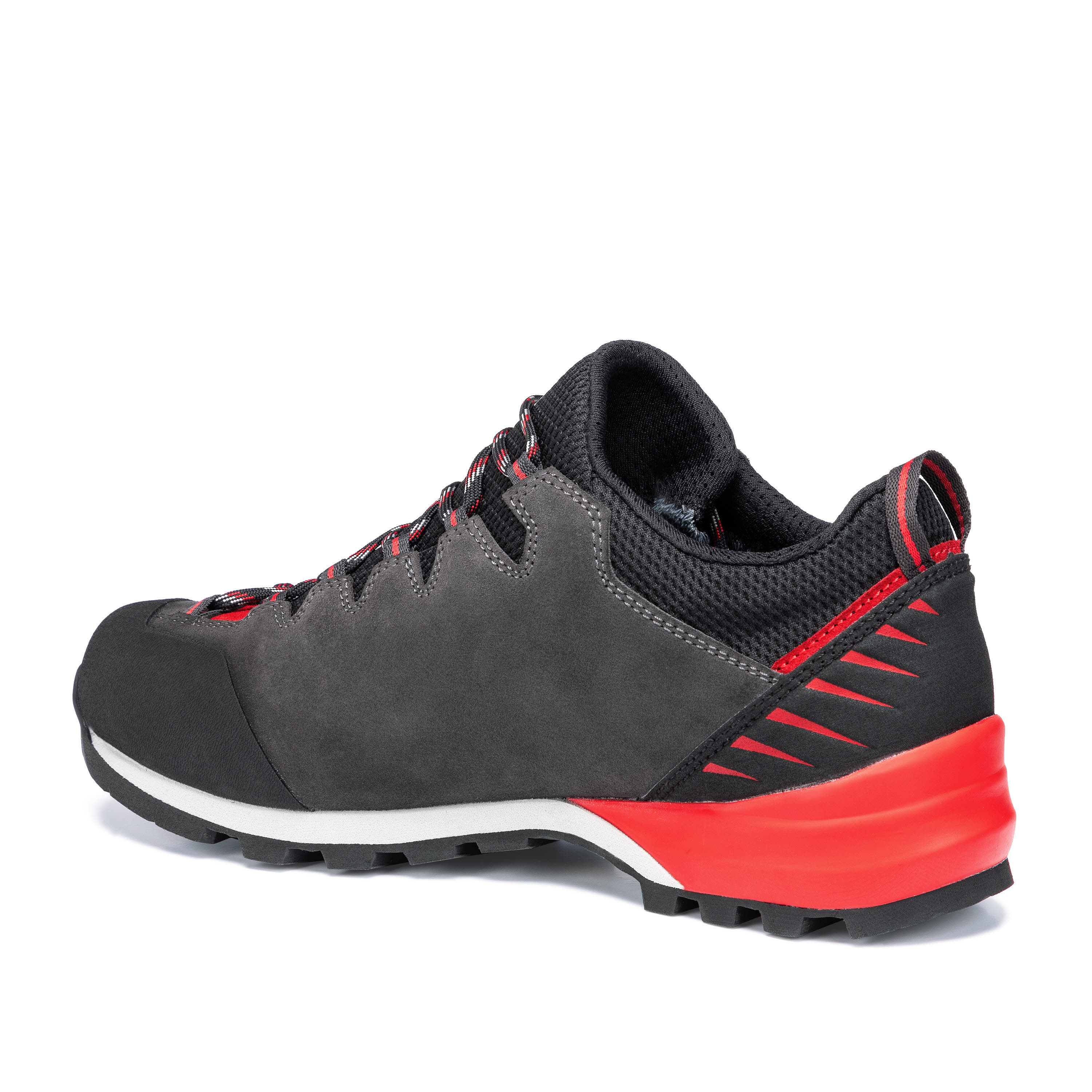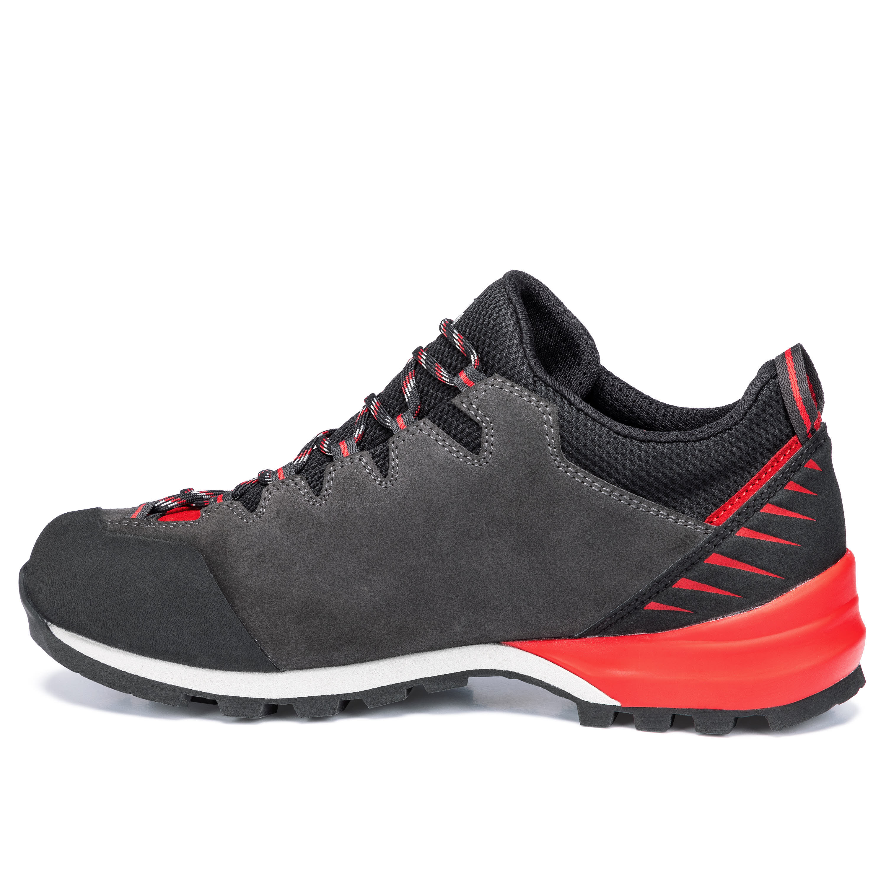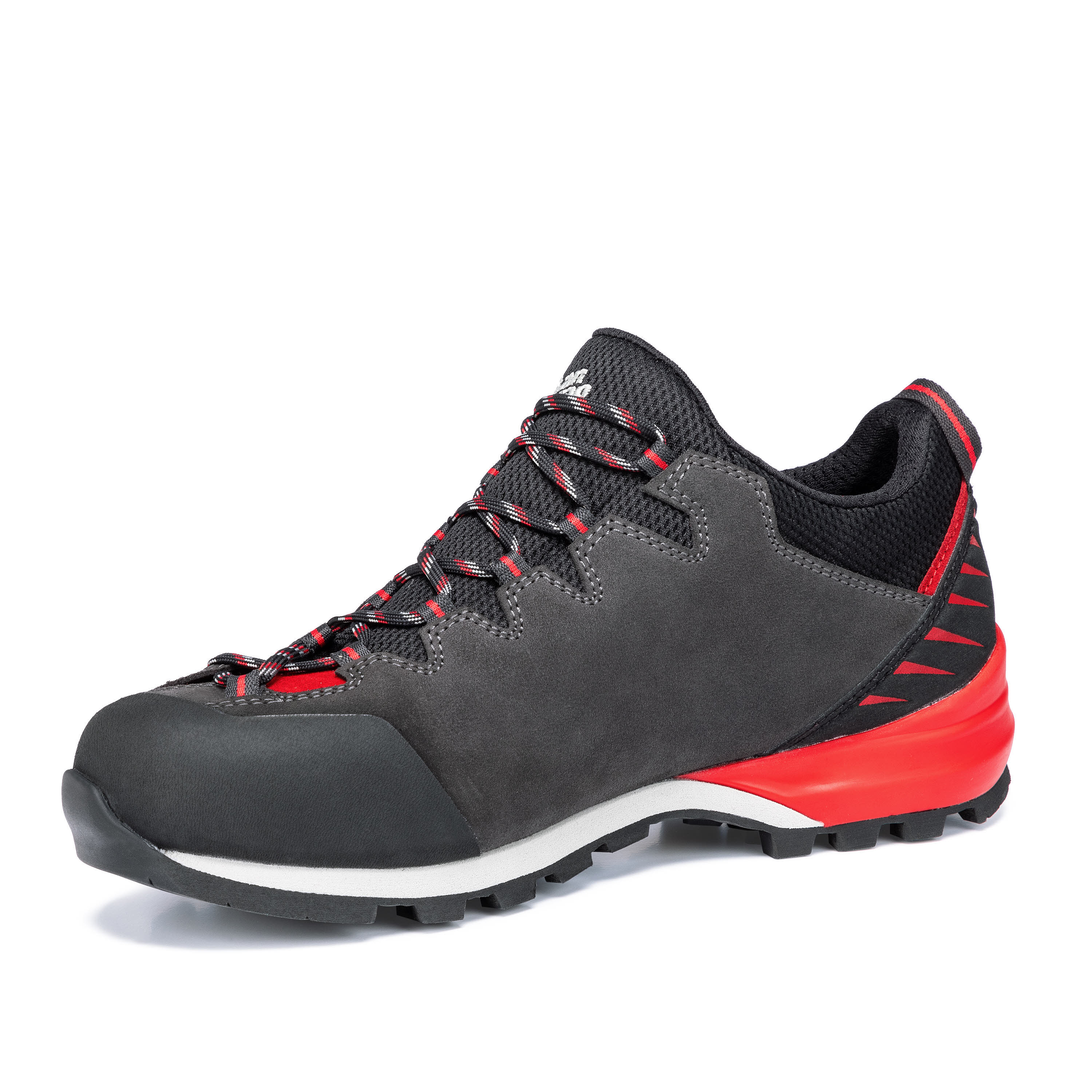 Die Low Cut Version des Makra Pro GTX – der Makra Pro Low GTX – ist ein Zustiegsschuh für anspruchsvolles Gelände. Doch was macht eigentlich einen guten Zustiegsschuh aus? Multifunktionalität ist gefragt. Der Makra Pro Low GTX funktioniert auf unterschiedlichstem Terrain: von asphaltierten Wegen über Wald und Wiese bis hin zu Geröllfeldern. Hierbei spielen Tragekomfort, Stabilität und Flexibilität eine wichtige Rolle. Seine leichte, jedoch besonders stabile Zwischensohle besteht aus PU und EVA: der überdimensionierte PU-Absatz sorgt für perfekte Dämpfung, ein verstärkender PU-Schaumkeil im Fersenbereich unterstützt zudem eine ideale Abrollbewegung. EVA im Vorfußbereich sorgt für Präzision im Antritt - und die exklusive Vibram „Makra Laufsohle“ bietet hervorragenden Grip. Ein Merkmal der Makra Familie ist die optimierte Ghilly-Schnürung bis in den Zehenbereich – dabei werden die Schnürsenkel durch Textilschlaufen gezogen. Der Fuß hat so auch im vorderen Bereich und in einem halbhohen Modell einen guten Halt und man steht stabil im Schuh. Dank wasserdichter GORE-TEX Membran bleiben die Füße auch bei unbeständigem Wetter trocken. Das Perwanger Leder ist robust, atmungsaktiv und langlebig. Eine Materialkombination, die auf ganzer Linie überzeugt.