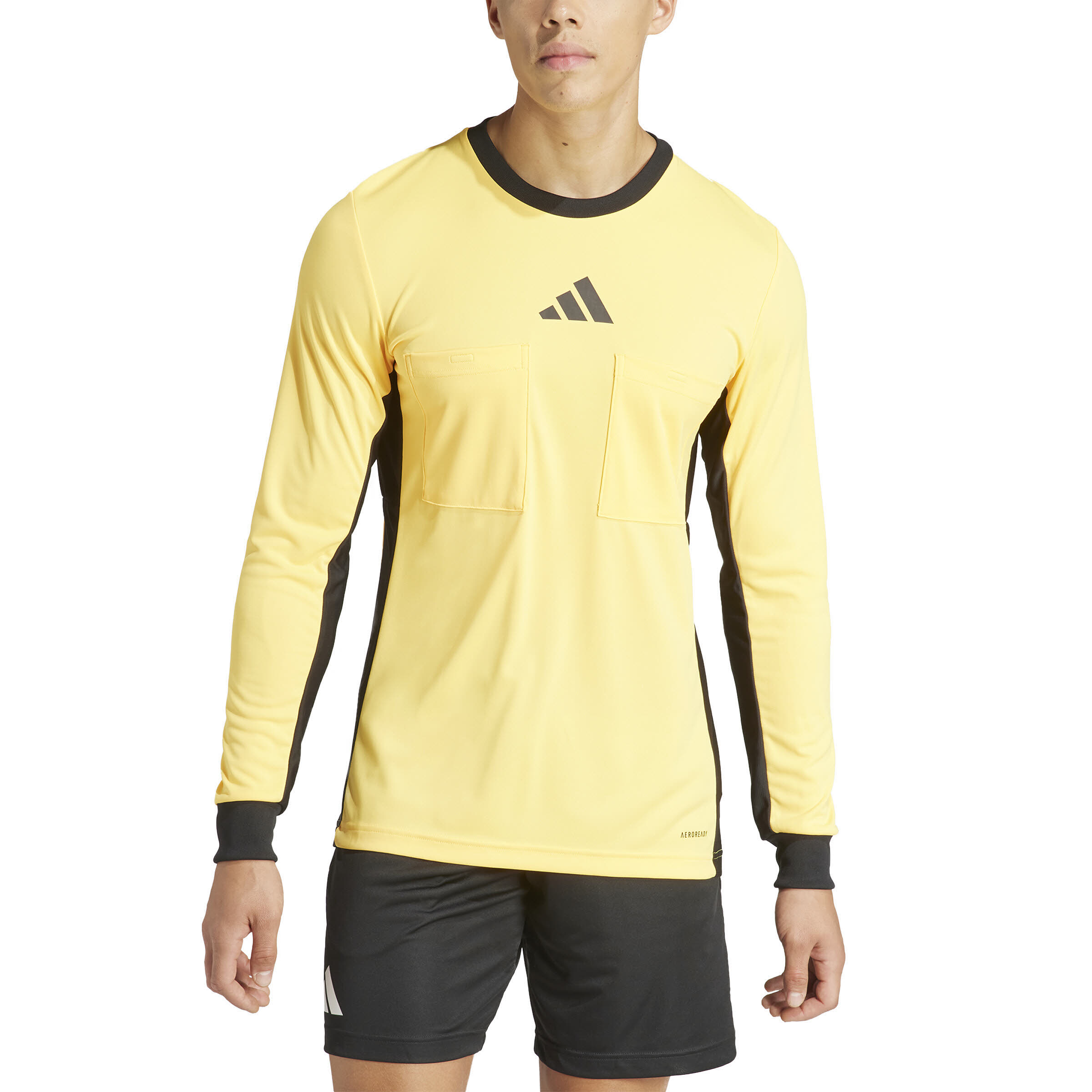 Auf dem Fußballplatz zählt jede Entscheidung. Deshalb kommt dieses adidas Trikot auch bei den besten Schiedsrichtern zum Einsatz. Dank der speziellen Konstruktion unter den Armen profitierst du von uneingeschränkter Bewegungsfreiheit. Die feuchtigkeitsabsorbierende AEROREADY Technologie sorgt für ein angenehm trockenes Tragegefühl, während du in den zwei Brusttaschen Karten und andere wichtige Kleinigkeiten immer griffbereit hast.