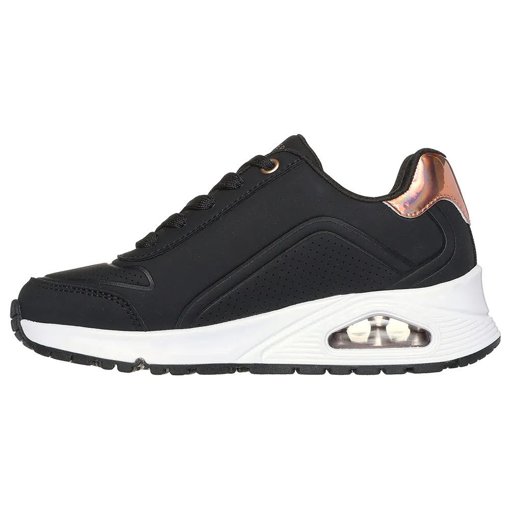 Produktbeschreibung Sichere dir einen stylischen Auftritt mit dem komfortablen Skechers Street™ Uno Gen1. Dieser modische Sneaker mit Schnürung verfügt über ein synthetisches Obermaterial aus Duraleder mit holografischem Besatz, einen seitlichen Reißverschluss, eine Skechers Air-Cooled Memory Foam Komfort-Innensohle und eine sichtbare, luftgepolsterte Skech-Air Zwischensohle.