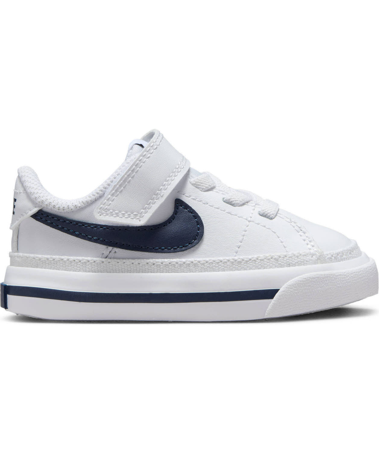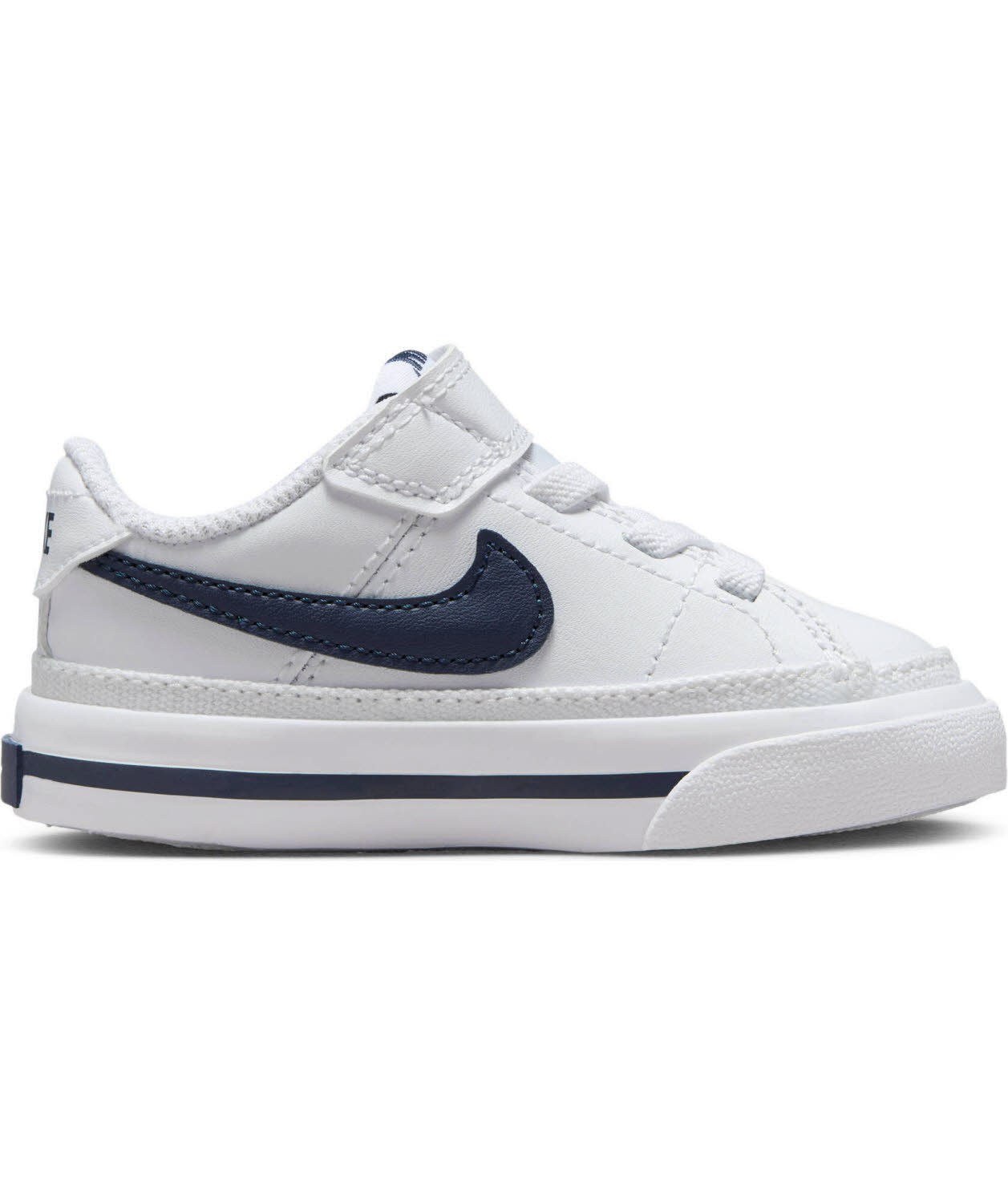 Nike Court Legacy Baby/Toddler Shoe TENNISKULTUR DER ALTEN SCHULE. Mit dem Nike Court Legacy erhalten kleine Füße Schuhe für jeden Tag – mit viel Tradition. Diese Low Tops sind strapazierfähig und bequem und zeigen traditionelle Nähte und einen Retro-Swoosh. Die Kleinen ziehen diese Schuhe an, und dann: Spiel, Satz und Sieg! Leder sorgt für Strapazierfähigkeit und klassischen Tennis-Style. Die elastischen Schnürsenkel mit Klettverschlussriemen erleichtern das An- und Ausziehen. Die durchgehende Gummisohle mit Fischgrätenmuster sorgt für Traktion und traditionellen Style. Die weiche Schaumstoffdämpfung sorgt für Tragekomfort bei geringem Gewicht.