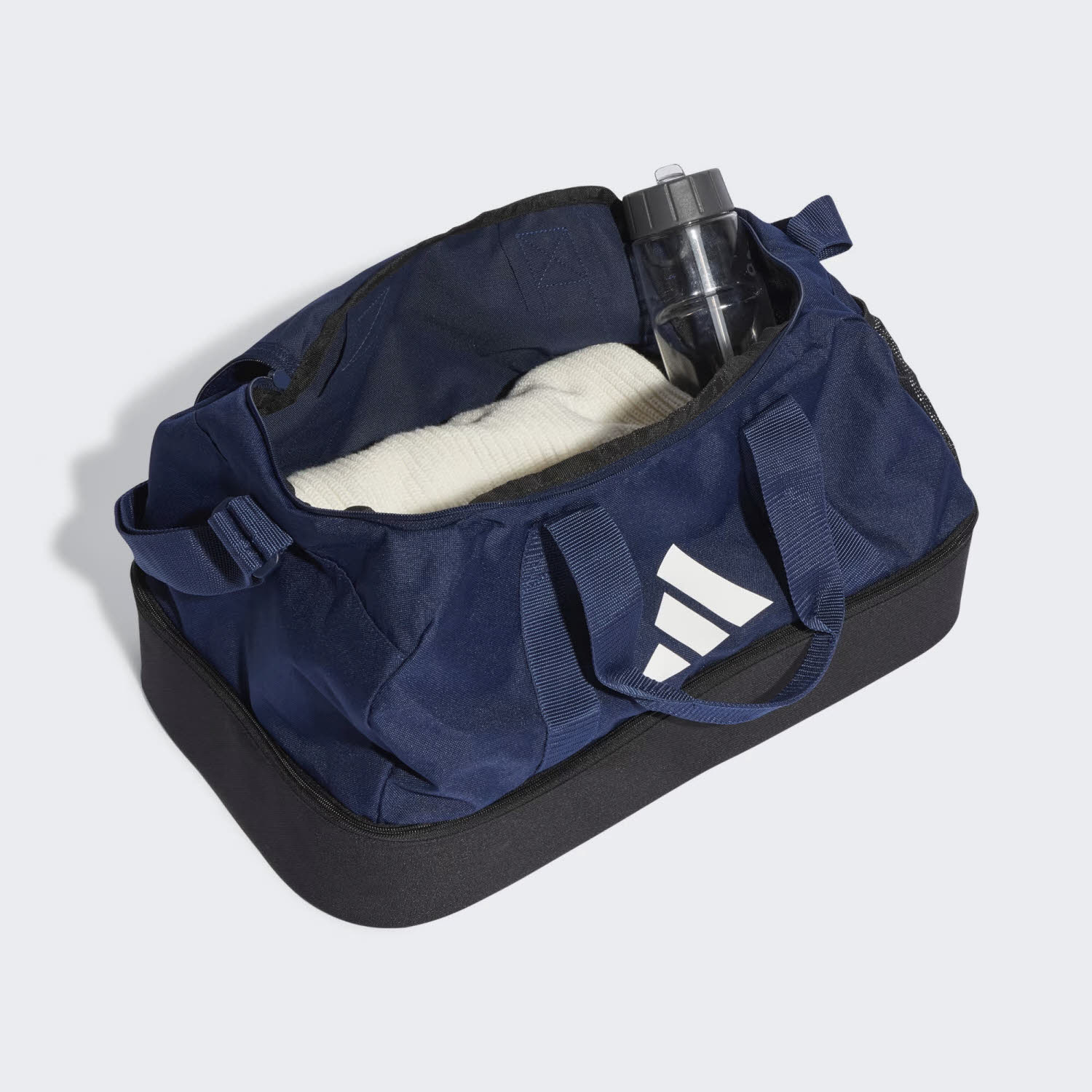 Diese adidas Tiro League Duffelbag ist perfekt für deine Fußballausrüstung. Sie hat ein strapazierfähiges Hartschalen-Bodenfach und eine seitliche Mesh-Tasche für Snacks und Wasserflasche. Dank des gepolsterten, verstellbaren Schulterriemens lässt sie sich außerdem bequem tragen. Und wenn du es eilig hast, kannst du sie dir schnell mit den Tragegriffen schnappen.