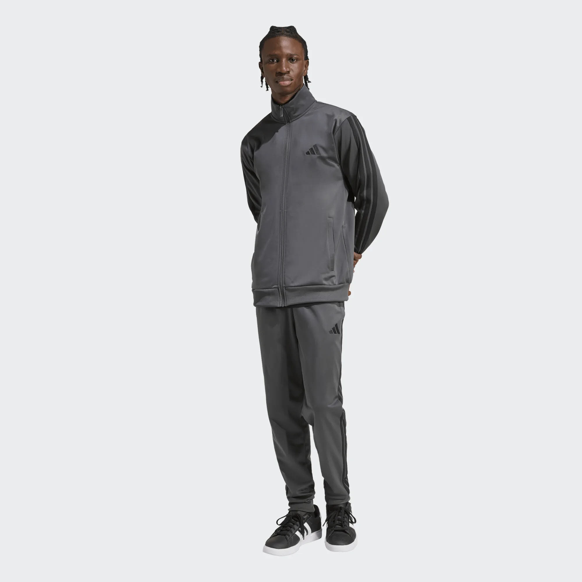 Beschreibung · Mit diesem adidas Trainingsanzug startest du stylish und bequem ins Wochenende. Das weiche, glatte Trikotmaterial sorgt für Komfort, ganz gleich, ob du Besorgungen machst oder dich mit Freunden triffst. Mit dem Kordelzug am elastischen Bund kannst du die Passform individuell regulieren. · Dieses Produkt ist mit 100 % recycelten Materialien hergestellt. Die Wiederverwendung vorhandener Materialien reduziert Abfall, unsere Abhängigkeit von nicht erneuerbaren Ressourcen und den Fußabdruck unserer Produkte.