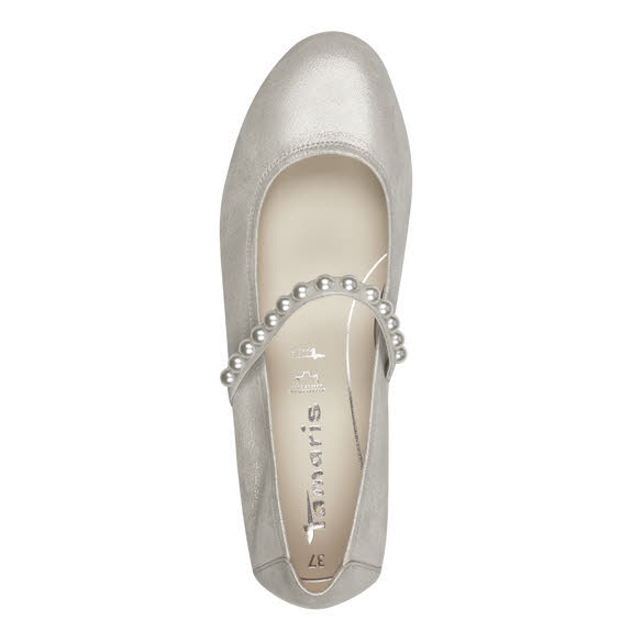 Eigenschaften "Tamaris Damen Ballerina Riemchenballerina silber grau"