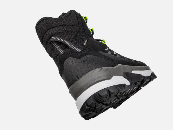 Leicht soll er sein und möglichst sportlich aussehen: Was nach reinem Wunschdenken klingt, wird endlich zum sehenswerten Standardmaß moderner Trekkingschuhe. Sportliche Linienführung, seitlich platzierte Prägungen mit farbigen Stickelementen und ein komplett neues Design machen den RANDIR GTX MID zum Vorreiter einer völlig neuen Generation leichter, wiederbesohlbarer Wanderschuhe. Davon zeugt der aus Spaltleder und Textil gefertigte Schaft. Die darin verarbeitete GORE-TEX-Membran hält die Füße trocken und sorgt dank ihrer Atmungsaktivität für ein angenehmes Innenschuhklima. In Kombination mit der weit nach vorn gezogenen Zwei- Zonen-Schnürung inkl. Klemmhaken und X-LACING Light kommt auch der Tragekomfort nie zu kurz. Während die im „Chunky Style“ gestaltete LOWA® DYNAPU®+ Zwischensohle für optimale Dämpfung und ein harmonisches Abrollverhalten sorgt, gewährleistet die VIBRAM CORNERSTONE-Laufsohle mit ausgeprägter Absatzkante und definierter Profilausrichtung hervorragenden Grip in jedem Terrain. Die robuste PU-Folie an Ferse und Fußspitze rundet das Gesamtkonzept ab.