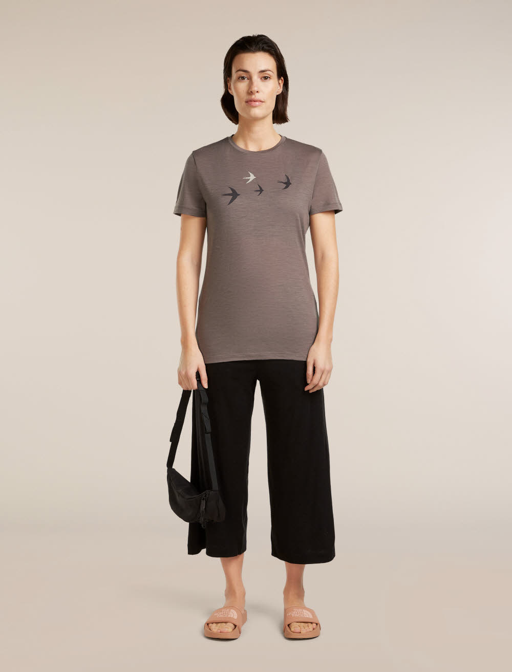 Icebreaker Merino 150 Tech Lite SS Tee Bird Transit Damen T-Shirt Funktionsshirt grau-braun