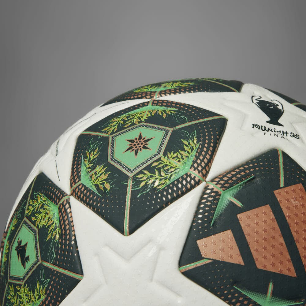 Dieser adidas Pro Ball ist eine stilvolle Hommage an den Austragungsort des UEFA Champions League Endspiels 24/25. Er greift den pittoresken Flair der Stadt und die patinierten Kupferkuppeln ihrer Sehenswürdigkeiten mit verschiedenen Grüntönen auf. Außerdem wird er in der K.-o.-Runde des wichtigsten europäischen Vereinsturniers über den Rasen rollen und ist mit seiner hochwertigen Butyl-Blase und seiner nahtlosen Oberfläche perfekt auf die Anforderungen von Spitzenfußball zugeschnitten.