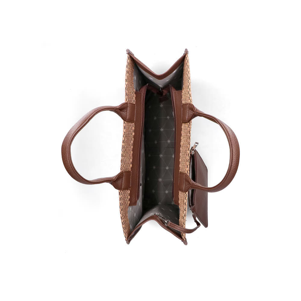 Schlichte Eleganz trifft auf natürliche Akzente! Diese dunkelbraune Handtasche kombiniert Bastoptik mit feinen Lederdetails. Dunkle Lederränder und braune Henkel verleihen ihr eine edle Note, während silberne Zipperpuller einen modernen Kontrast setzen. Das geräumige Innenfach lässt sich mit einem Reißverschluss sicher verschließen und bietet neben klassischen Innenfächern auch eine kleine, herausnehmbare Innentasche, welche ideal ist für Reisepass oder Bargeld. Ein stilvoller Begleiter, der jedes Outfit aufwertet!