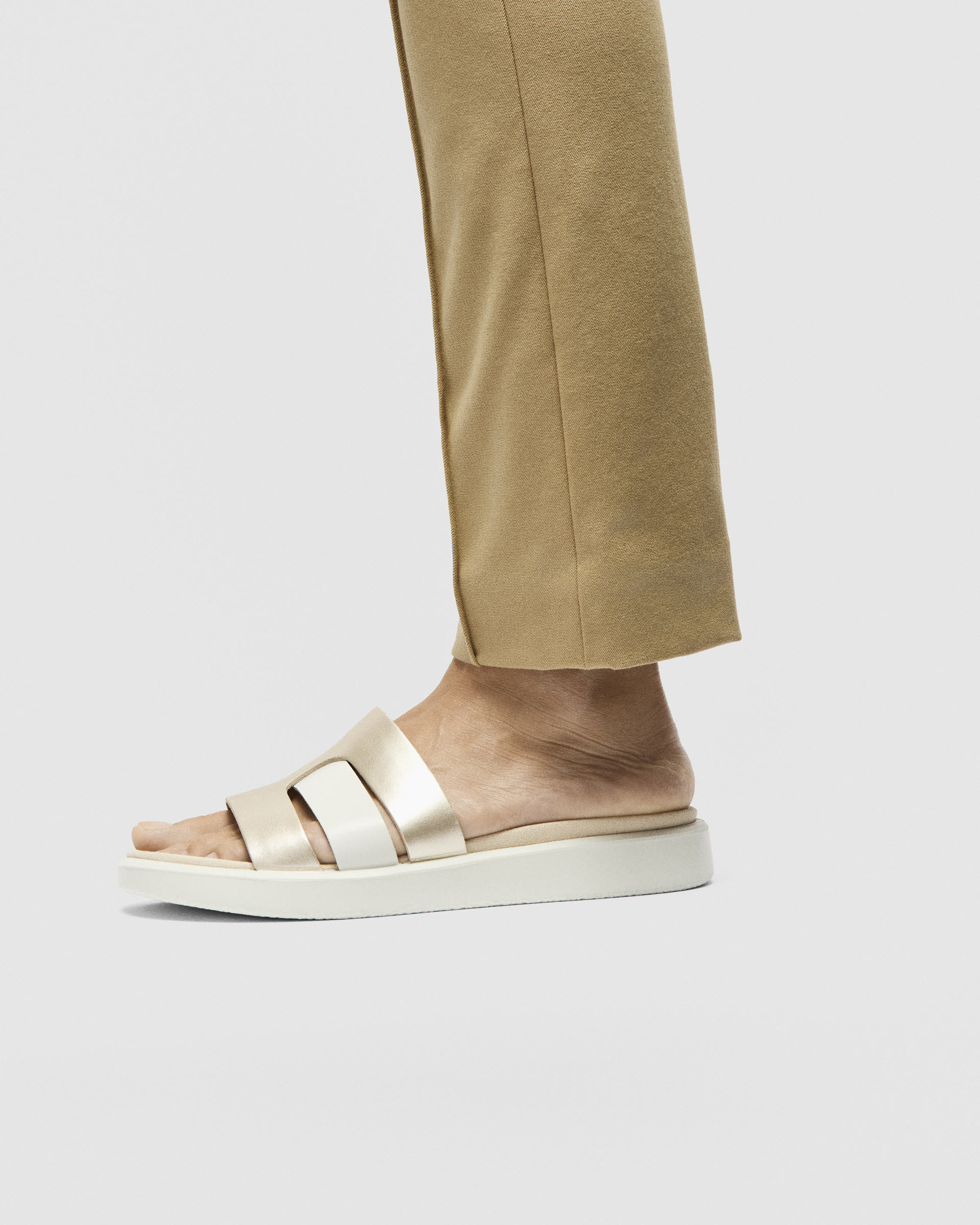 Eigenschaften "ECCO FLOWT W Damen Lederpantolette gold beige weiß"