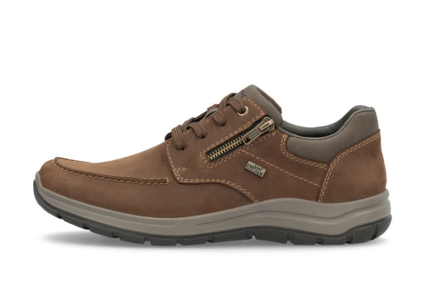 Bequem und praktisch! Diese lässigen nougatbraunen Rieker Schnürschuhe für Herren aus Rauleder sind gemütliche Begleiter auf all deinen Wegen. Eine Schnürung ergänzt den Reißverschluss und sorgt für Funktionalität und Komfort. Mit der schockabsorbierenden und leichten Sohle werden deine Füße bei jedem Schritt verwöhnt. Die Schnürschuhe sind super bequem dank der gepolsterten und herausnehmbaren Einlegesohle. Durch die Extraweite H haben die Füße mehr Platz im Schuh. Die RiekerTEX-Technologie hält die Füße bei jedem Wetter trocken. Modisches Wellness-Feeling im Stil von Rieker!