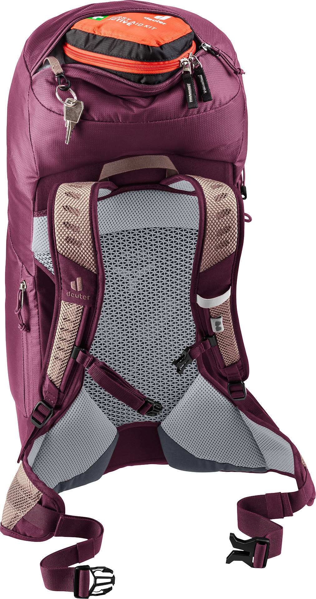 Der bequeme Rucksack für Tagesausflüge mit federleichtem, maximal belüftetem Aircomfort-Rückensystem bietet nicht nur eine sehr gute Gewicht-Komfort-Ratio, sondern besitzt auch ein geräumiges Hauptfach sowie eine Smartphone-Tasche, elastische Seitentaschen, Deckelfächer und Schlaufen außen am Rucksack, die das Verstauen und Befestigung von Gegenständen und Stöcken mühelos einfach machen. Er ist Helmnetz- und Trinksystem-kompatibel (bis 3 L) und hat eine abnehmbare Regenhülle. Angaben zum Hersteller (EU-Produktsicherheitsverordnung, GPSR) Deuter Sport GmbH Daimlerstr. 23 86368 Gersthofen Deutschland info@deuter.com