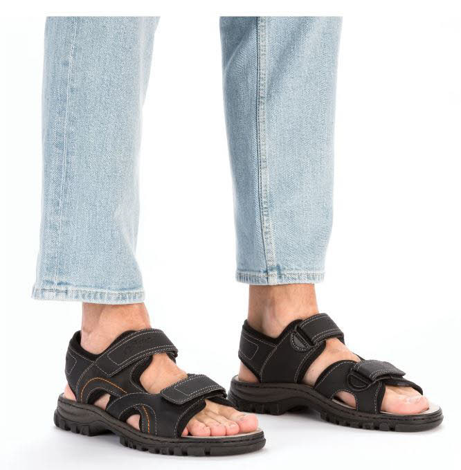 Achtung, Lieblingsschuh-Potential! Diese mitternachtsschwarzen Rieker Trekkingsandalen für Herren bringen alles unter einen Hut: Komfort, Funktion und natürlich Design. Idealer Halt und gute Passform sind durch Riemen, einen verstellbaren Klettverschluss und einen breiten Fersenriemen garantiert. Die Ziernähte sorgen für das perfekte Finish und einen auffallenden Look. Die schockabsorbierende und leichte Sohle bietet besten Laufkomfort. Durch die Komfortweite G haben die Füße mehr Platz im Schuh. Achtung, Lieblingsschuh-Potential!