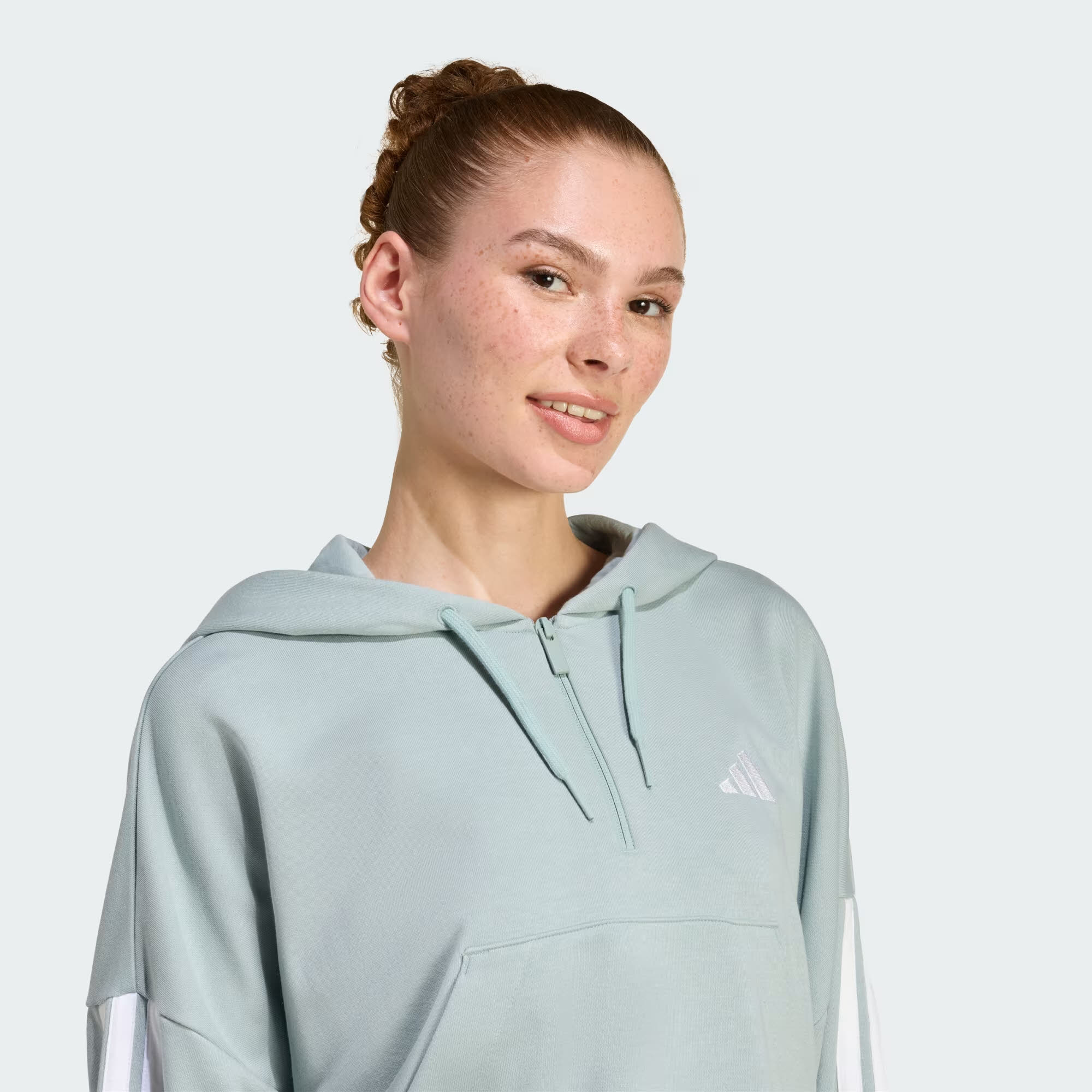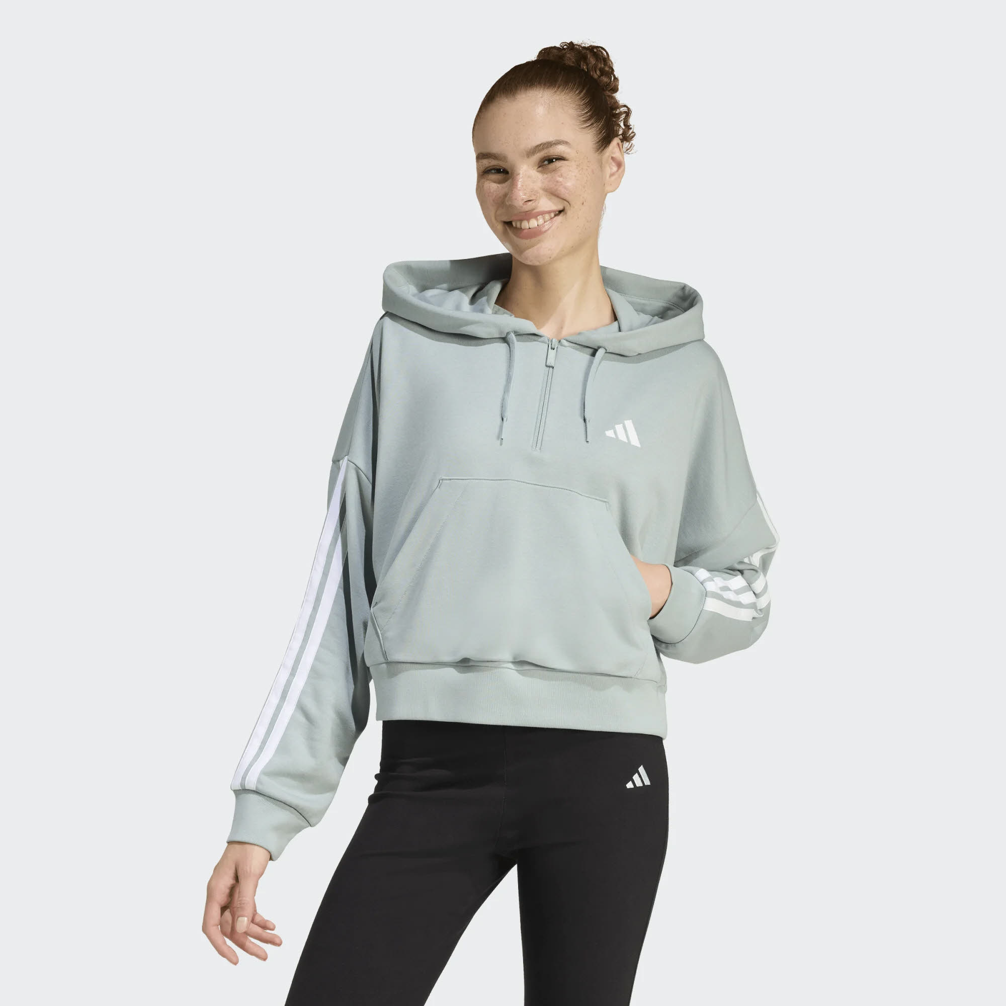 Produktinformationen "adidas Essentials 3-Stripes French Terry Quarter-Zip Hoodie Damen grün"