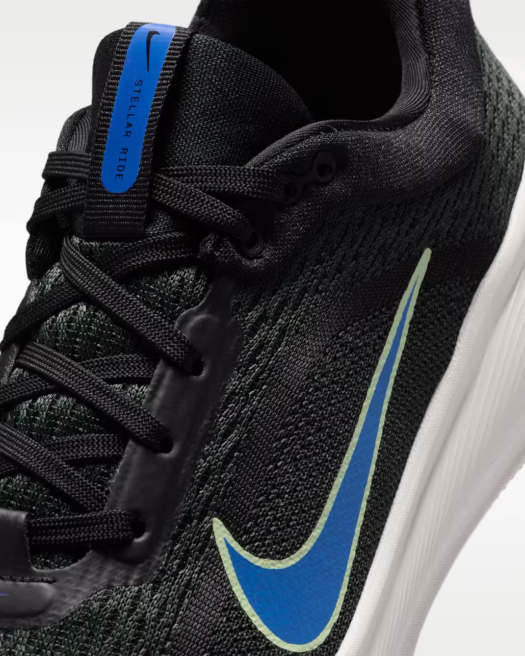 · Ein himmlisches Lauferlebnis: Das Design der dicken Mittelsohle mit ComfiRide-Schaumstoff erinnert an den Vomero und sorgt für eine weiche, reaktionsfreudige Dämpfung.