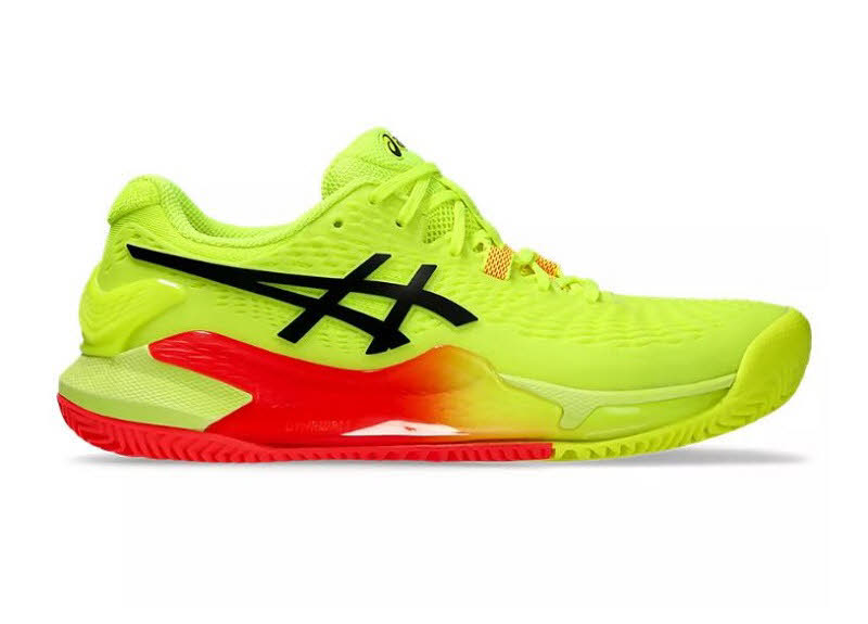 Der GEL-RESOLUTION 9 CLAY PARIS sorgt für verbesserte Stabilität und Dämpfung für Tennisspieler*innen, die das Spiel gerne von der Grundlinie aus kontrollieren. Die Farbkombination ist von der „Stadt der Lichter“ und ihren energetisierenden Tönen inspiriert.Die DYNAWALL Technologie in der Mittelsohle reicht jetzt bis zur Ferse für mehr Stabilität bei Seitwärtsbewegungen. Das funktionale Feature ist effizient bei schnellen Seitwärtsbewegungen entlang der Grundlinie.