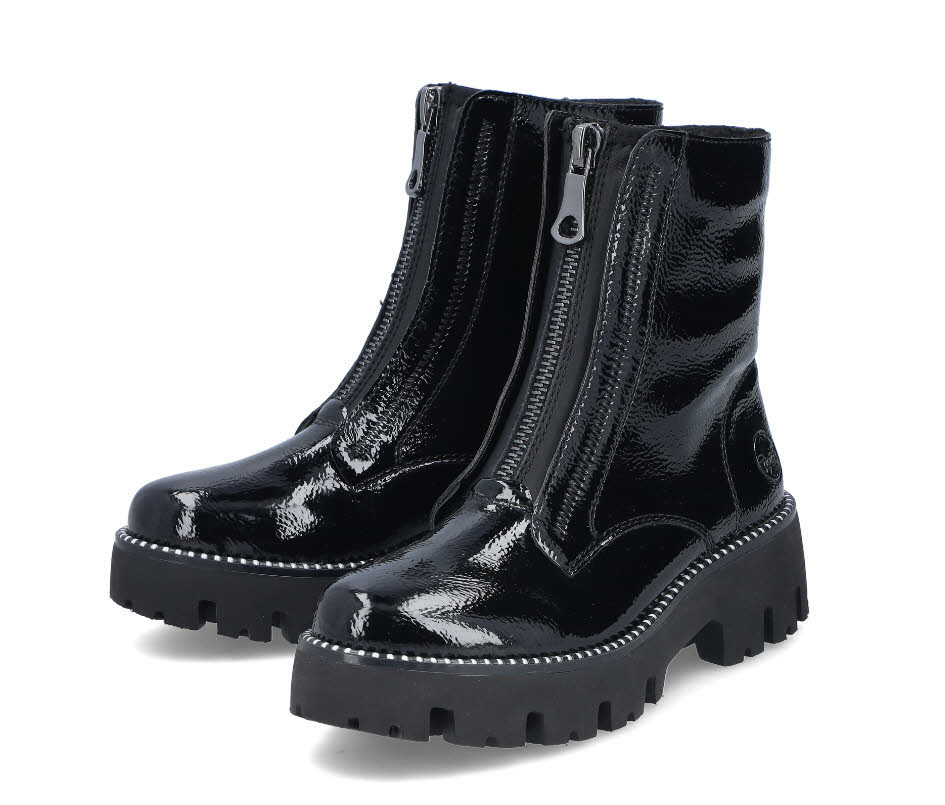 Produktinformationen "Rieker Damen Stiefelette Slipper gefüttert Biker Boots glanzschwarz"