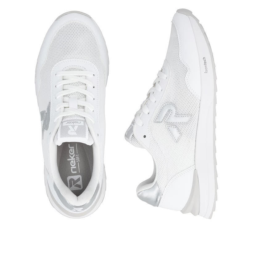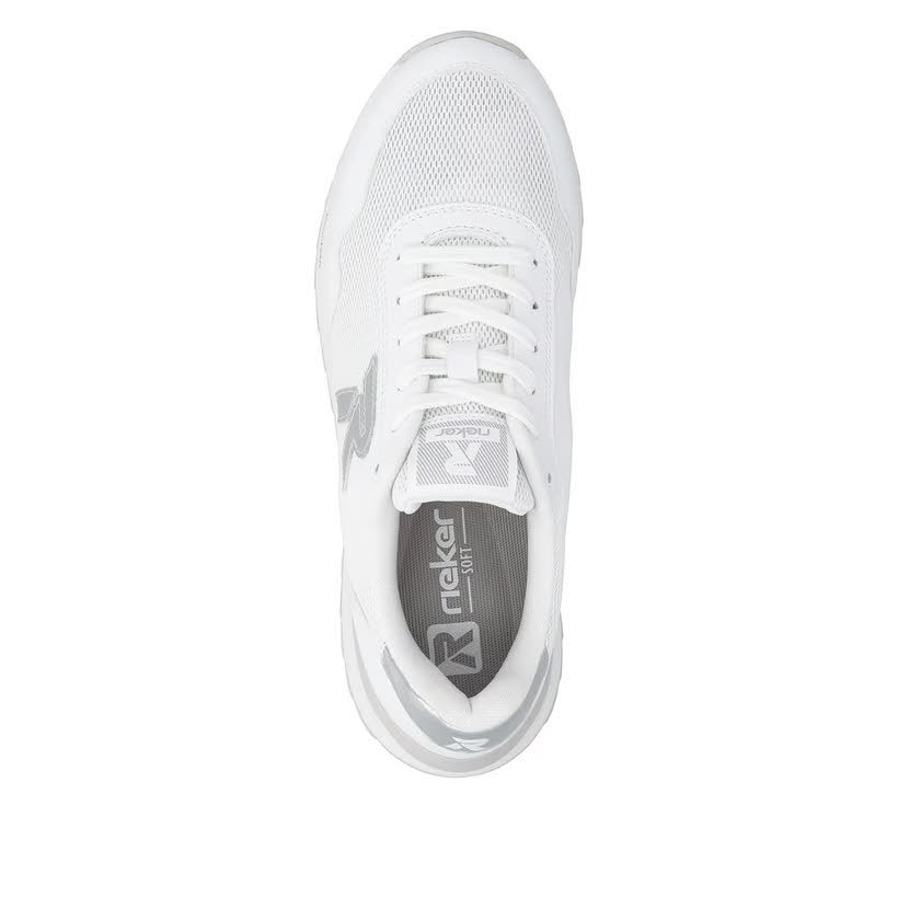 Produktbeschreibung Rieker Sneaker Low für Damen in Weiß aus wertigem Textil gefertigt. EVA-Laufsohle mit flexibler und ultraleichter Eigenschaft. Gepolsterte, dämpfende und herausnehmbare Einlegesohle. Leichter Microvelour-Drysport-Futtermix mit atmungsaktiver Eigenschaft.