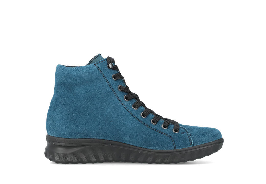 Komfort und gutes Aussehen - das geht! Diese cyanblauen Rieker Schnürstiefel für Damen aus Rauleder sind die perfekten Buddies für kalte Tage. Trotz Reißverschluss kann der Schuh ganz einfach mit einer Schnürung geschlossen werden. Mit der leichten und schockabsorbierenden Sohle werden deine Füße bei jedem Schritt verwöhnt. Die gepolsterte und herausnehmbare Einlegesohle bietet Komfort und Funktionalität für jeden Tag. Das kuschelige und sehr warme Schurwoll-Futter und die bewährte RiekerTEX-Technologie machen diesen Schnürstiefel zum optimalen Begleiter – perfekt für nasskalte Tage. Diese Schuhe sind die perfekte Symbiose aus Stil und Komfort!