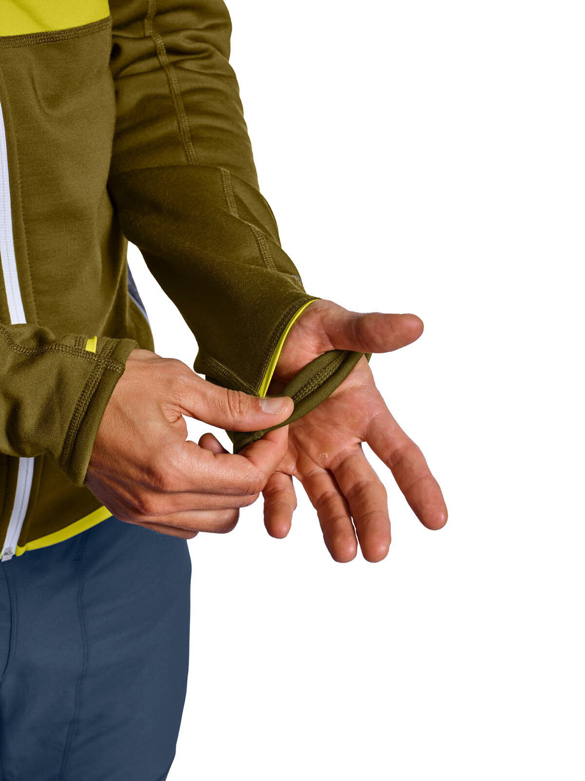 Zwei seitliche Eingriffstaschen mit traditionellem Loden der Firma STEINER halten die Hände warm und bieten Platz für wichtige Kleinigkeiten, die griffbereit sein sollen. Dank einer speziellen Verarbeitungstechnik schließen die Daumenschlaufen optimal ab, sodass selbst hier keine Wärme verloren geht. Damit ist unser FLEECE HOODY für Herren bereit für all deine Winteraktivitäten am Berg und im Tal.
