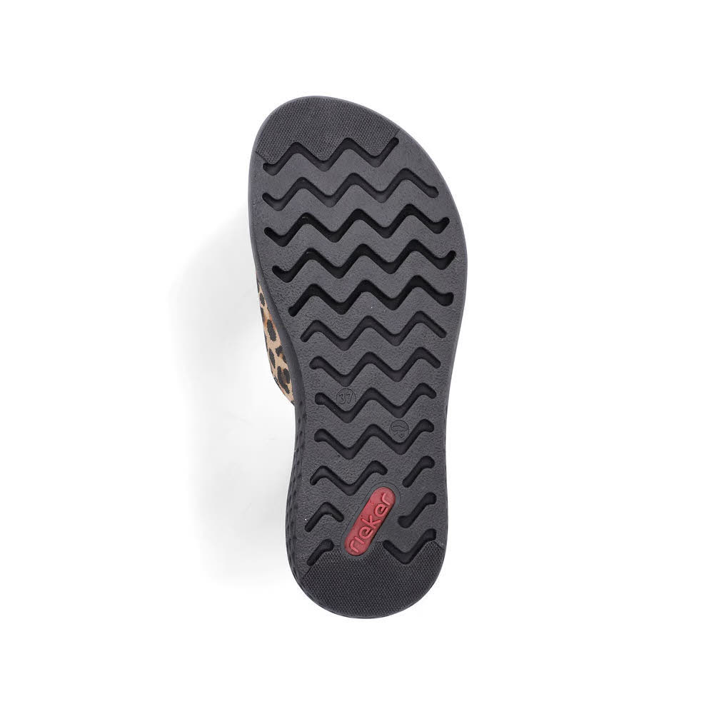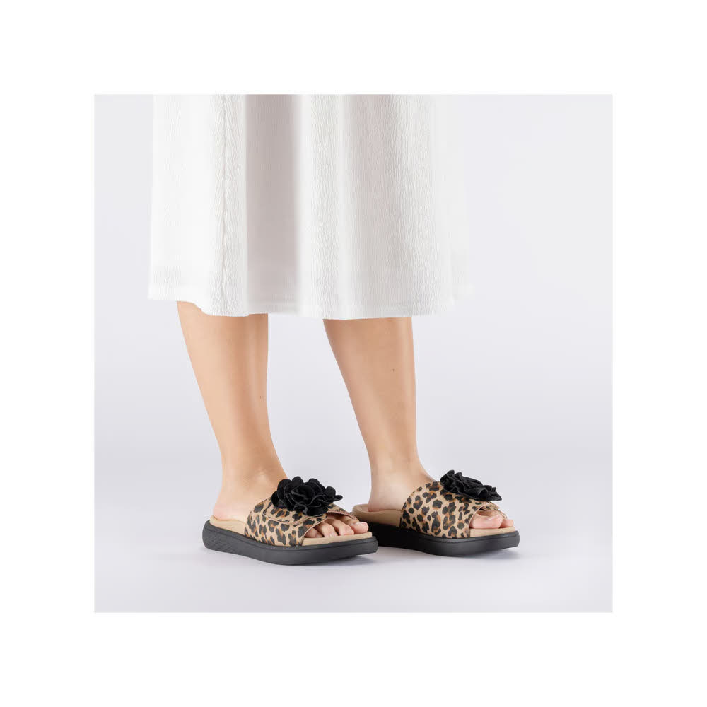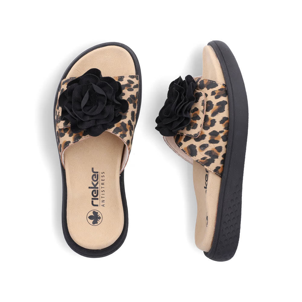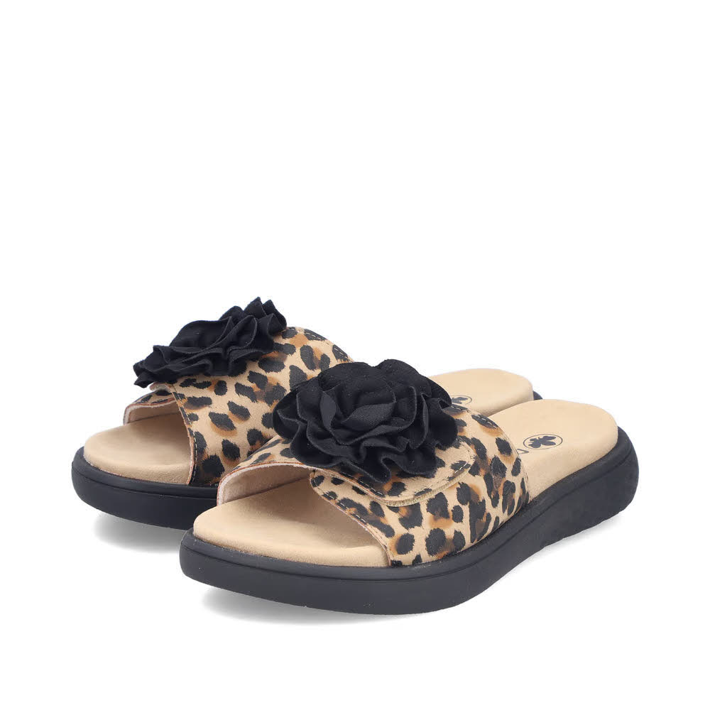 Rieker FSK Damen Sandalen Pantoletten leoprint beige/schwarz