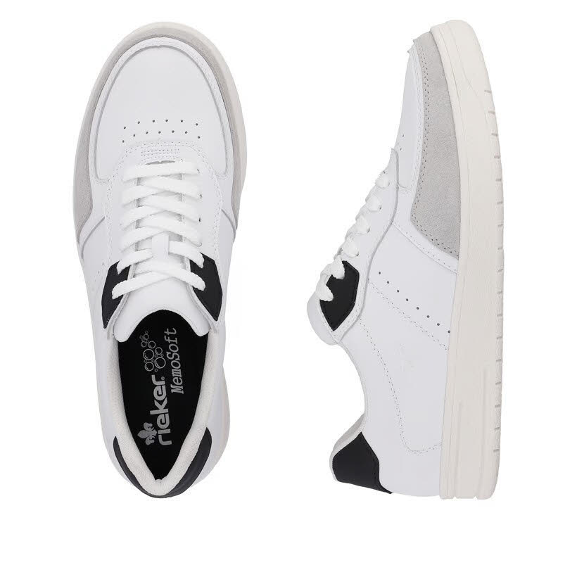 Achtung Trendalarm! Diese lässigen schneeweißen Rieker Sneaker für Herren aus Glattleder sind gemütliche Begleiter auf all deinen Wegen. Durch die Schnürung ist der Schuh ideal anpassbar. Die in die robuste Laufsohle integrierte Zwischensohle aus EVA-Material sorgt für ein noch leichteres und weicheres Auftreten. Die Sneaker sind super bequem dank der gepolsterten und herausnehmbaren Einlegesohle. Durch die Komfortweite G 1/2 haben die Füße mehr Platz im Schuh. Mehr geht nicht!