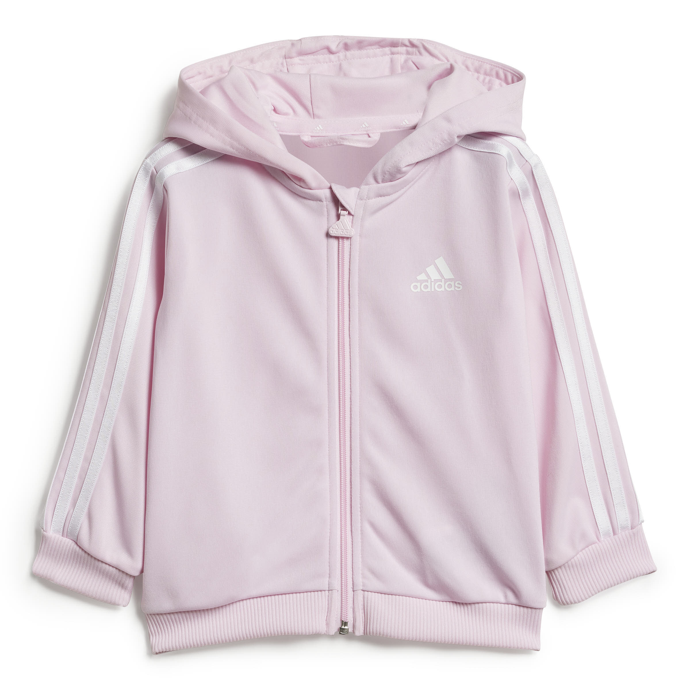 Dieser adidas Trainingsanzug für Babys und Kleinkinder ist perfekt für aktive Kids. Jacke und Hose sind aus weichem Trikotmaterial, damit es dein kleiner Schatz beim Krabbeln und Spielen bequem hat. Der elastische Bund und die Rippbündchen sorgen für einen sicheren Sitz, während die Kapuze zusätzlichen Schutz vor Kälte bietet.