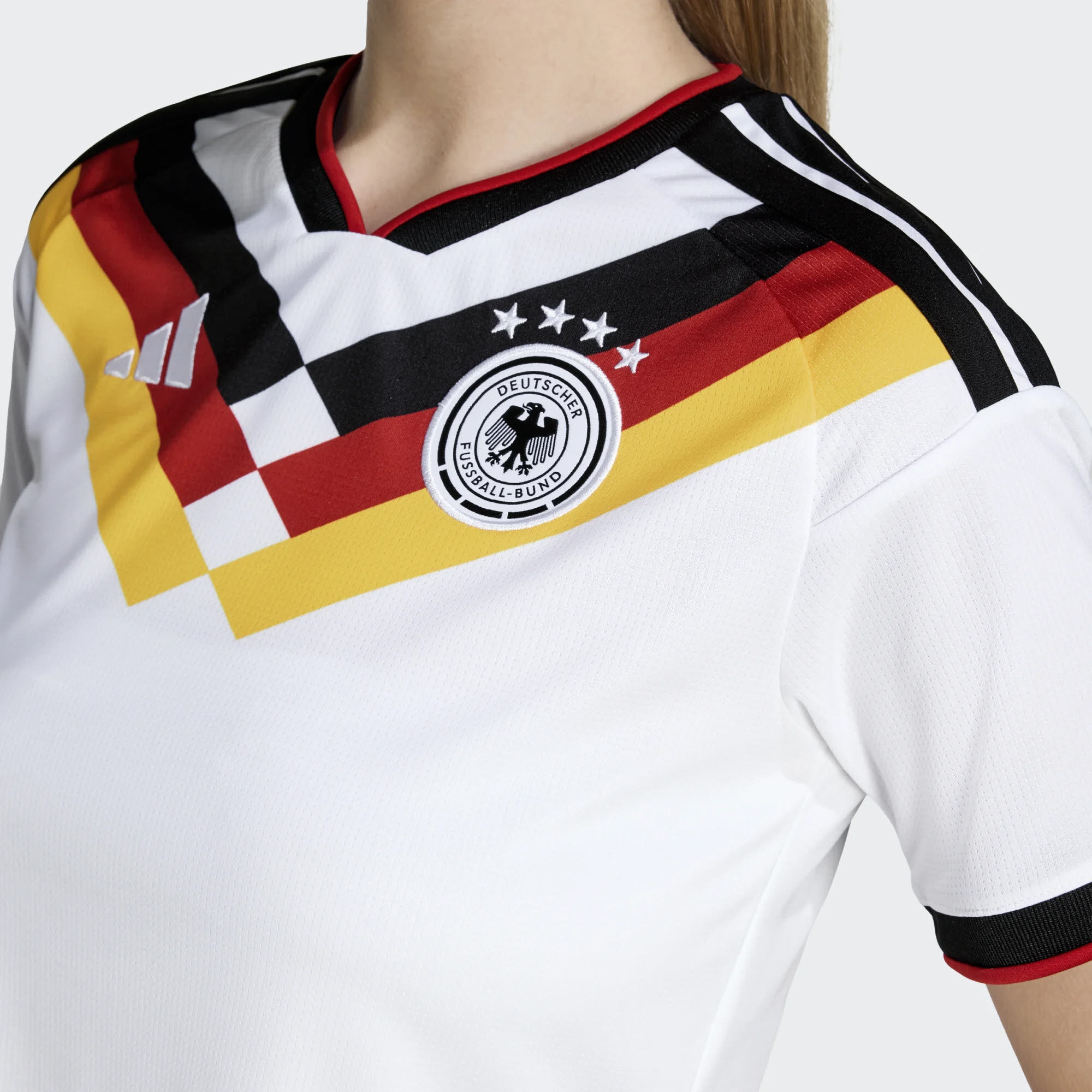 Das Deutschland 26 Replica kürzer geschnittenes Heimtrikot zelebriert das Erbe und die Innovation des Fußballs. Es ist von unvergesslichen Momenten inspiriert und kombiniert legendäre Elemente mit der neuesten Technologie, um eine Ikone von morgen zu schaffen. Kühl. Trocken. Bereit. Climacool leitet Feuchtigkeit von der Haut ab und sorgt für ein kühles und trockenes Tragegefühl - keine Ablenkung, nur Performance. Die Doppelstrick-Konstruktion schenkt Strapazierfähigkeit und hohen Komfort und macht dieses Piece zu einem Must-have für leidenschaftliche Fans. Mit seiner regulär geschnittenen Passform sitzt dieses Trikot weder zu eng noch zu locker. Der EQT Kragen setzt einen eleganten Akzent und das Flaggen-Label rundet den Look optisch ab. Ob du von der Tribüne aus jubelst oder selbst auf dem Spielfeld stehst - dieses Trikot verkörpert deutsche Fußballkultur.