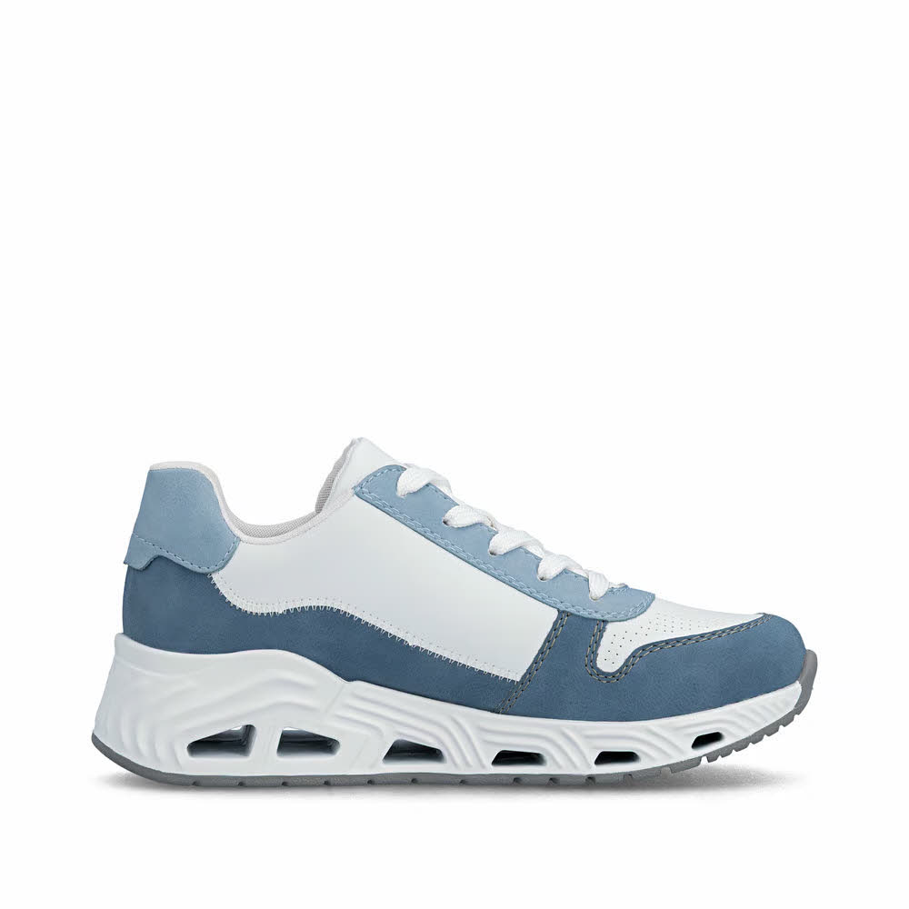 Produktbeschreibung Mehr Bewegungsfreiheit für die Füße! Diese lässigen blauweißen Rieker Sneaker Low für Damen sind gemütliche Begleiter auf all deinen Wegen. Die Schnürung wird durch einen Reißverschluss ergänzt und garantiert somit idealen Halt und eine perfekte Passform. Die Sohle ist sowohl schockabsorbierend als auch ultraleicht und bietet damit ein doppeltes Wohlgefühl bei jedem Schritt. Mit der gepolsterten und herausnehmbaren Einlegesohle verfügen die Sneaker Low über ein weiteres, praktisches Komfort-Feature. Außerdem ist deinen Füßen durch die Komfortweite mehr Bewegungsfreiraum im Vorfußbereich geboten. Was will man mehr!