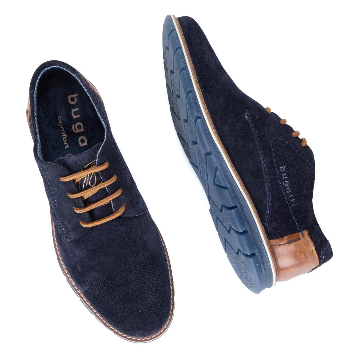Produktdetails · Obermaterial Rauleder · Schnürverschluss · runde Schuhspitze · Perforierung · Kontrastdetails · profilierte Gummilaufsohle Ultimativen Komfort verspricht der Schnürschuh von Bugatti, der sich durch ein praktisches Wechselfußbett und seine flexible Laufsohle auszeichnet. Das weiche Veloursleder ist mit hellen Schnürsenkeln und einem Fersenbesatz kombiniert, die stilvolle Akzente setzen. Angaben zum Hersteller (EU-Produktsicherheitsverordnung, GPSR) AstorMueller AG c/o Bugatti Chamerstr. 50 6331 Hünenberg Schweiz info@astormueller.com Angaben zur verantwortlichen Person (EU-Produktsicherheitsverordnung, GPSR) Sport Michetschläger e. K. Marktplatz 29 94157 Perlesreut Deutschland info@spomi.de