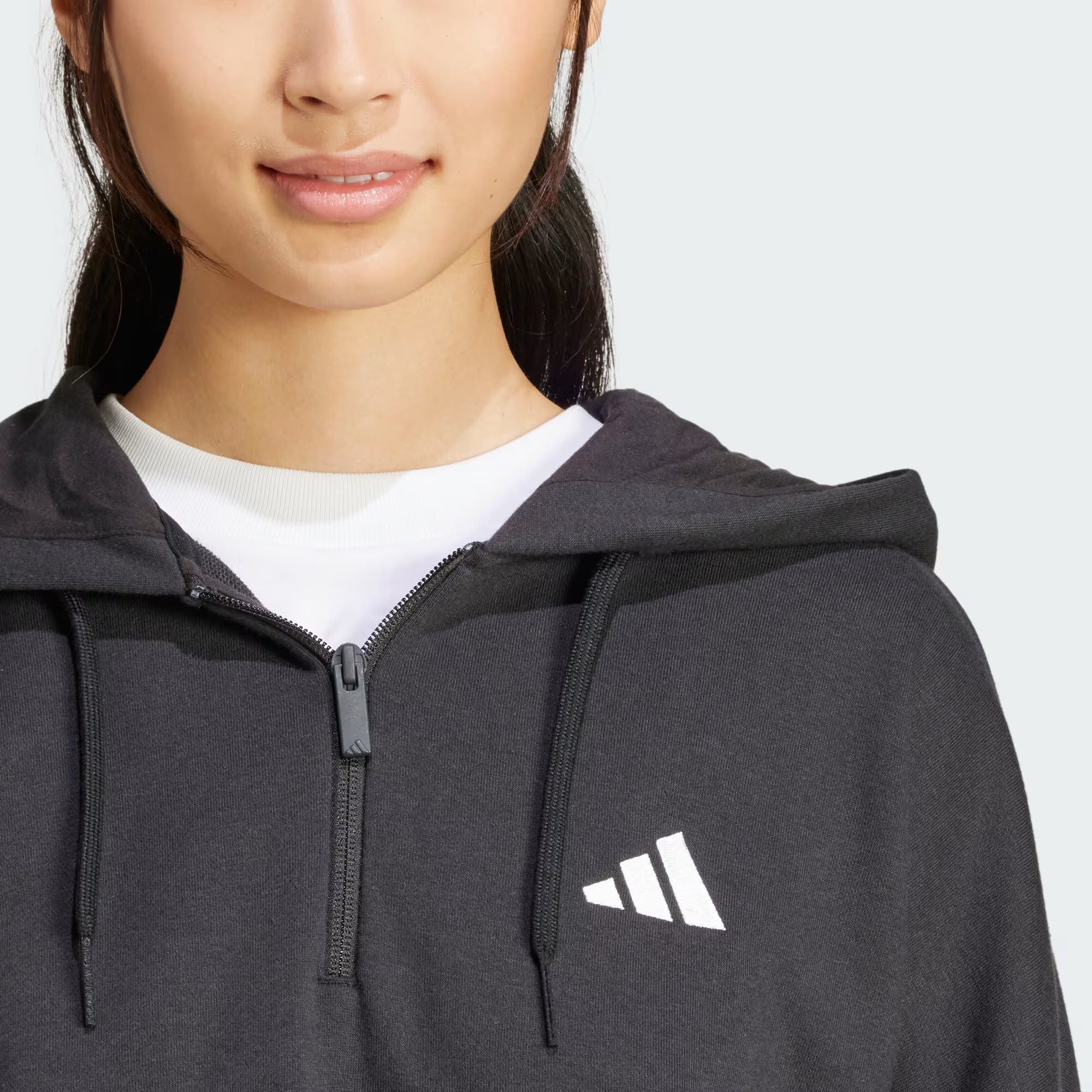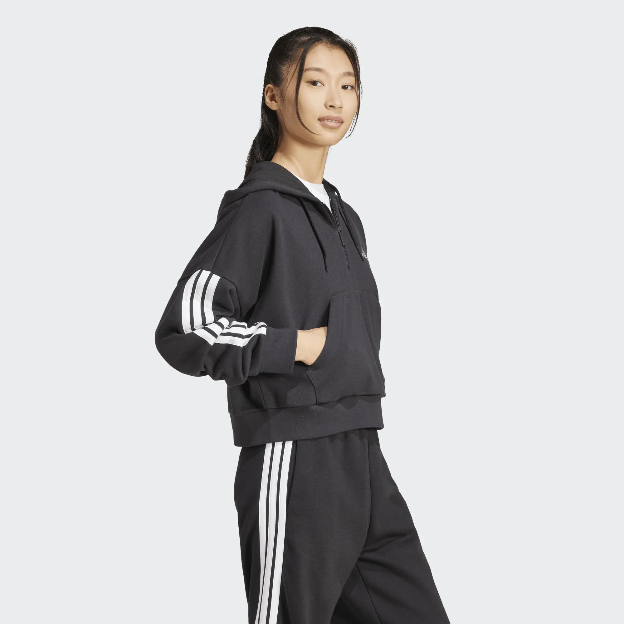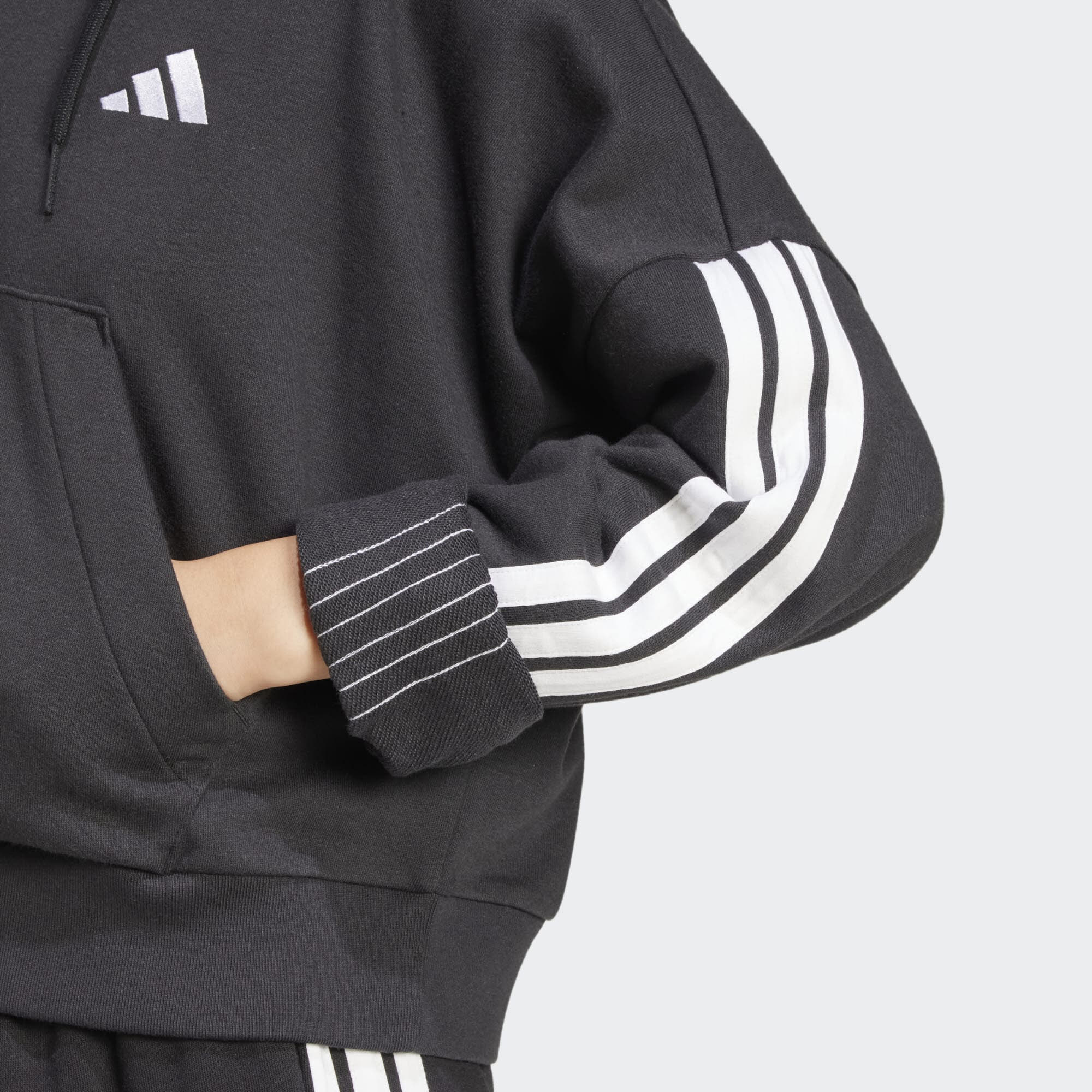 Produktinformationen "Essentials 3-Stripes French Terry Quarter-Zip Hoodie Damen schwarz"