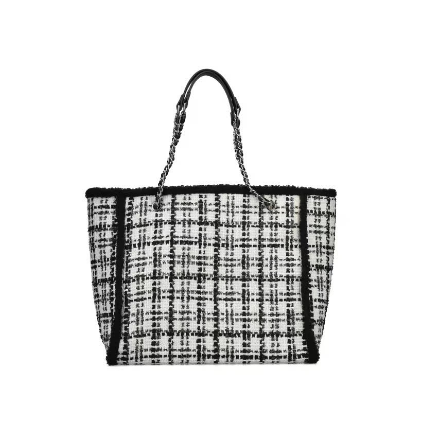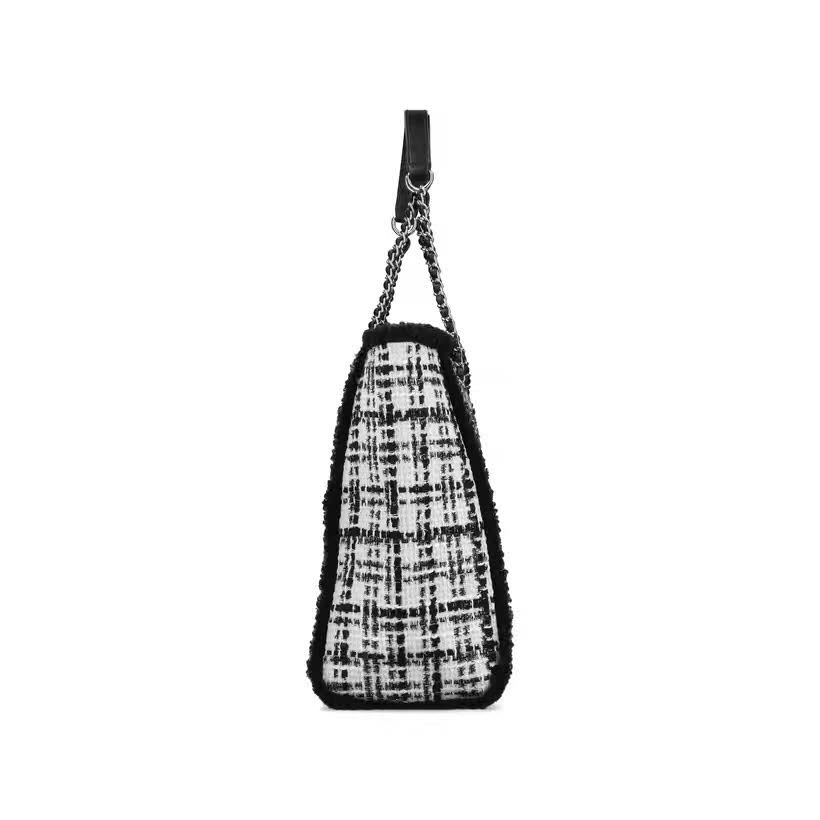 Die Shoppingtour kann nur perfekt werden! Dieser weiß-schwarz-karierte Rieker Shopper nimmt all dein Hab und Gut und neu erstandene Dinge bedingungslos auf. Super praktisch sind die drei Innenfächer, eines mit Reißverschluss, die anderen ohne Verschluss. Optisches Highlight: Die gewebten Henkel mit verflochtener Kette sowie die Fell-Details!