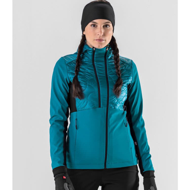 Produktinformationen "Löffler W HOODED HYBRIDJACKET GRACE PL60 Langlaufjacke Damen blaugrün"
