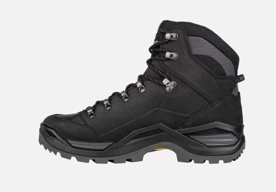 Über Jahrzehnte stand der RENEGADE genau für ein Attribut: die perfekte Passform. Um diesen Aspekt weiter auszubauen, wurde der neue RENEGADE EVO GTX MID um einige spezifische Details ergänzt. So wurde zum Beispiel am Schaft auf zusätzlichen Komfort geachtet, indem die Innenseite des Vorfußbereichs komplett aus einem Stück gefertigt wurde. Durch den Verzicht auf überflüssige Nähte kann sich das hier verarbeitete Nubukleder flexibel an die individuelle Form der Fußknochen anpassen, um Reibung zu verhindern und das Großzehengelenk zu entlasten. Hierzu trägt auch die Zwei-Zonen-Schnürung bei, die sich jetzt dank neu gestalteter Klemmhaken noch leichter an die individuellen Anforderungen anpassen lässt. Zusätzlichen Komfort bietet die wasserdichte und atmungsaktive GORE-TEX-Membran. Darüber hinaus verfügt der neue RENEGADE über ein neu gestaltetes Sohlenpaket. Die direkt angespritzte Zwischensohle besteht hier aus zwei Dämpfungsteilen. Der erste Teil besteht aus LOWA® DYNAPU®, beim zweiten Teil handelt es sich um einen festeren Teil, der zusammen mit dem CROSS OVER FRAME für eine optimale Führung sorgt. Für ordentlich Grip sorgt die neue VIBRAM RENE TRAC®.