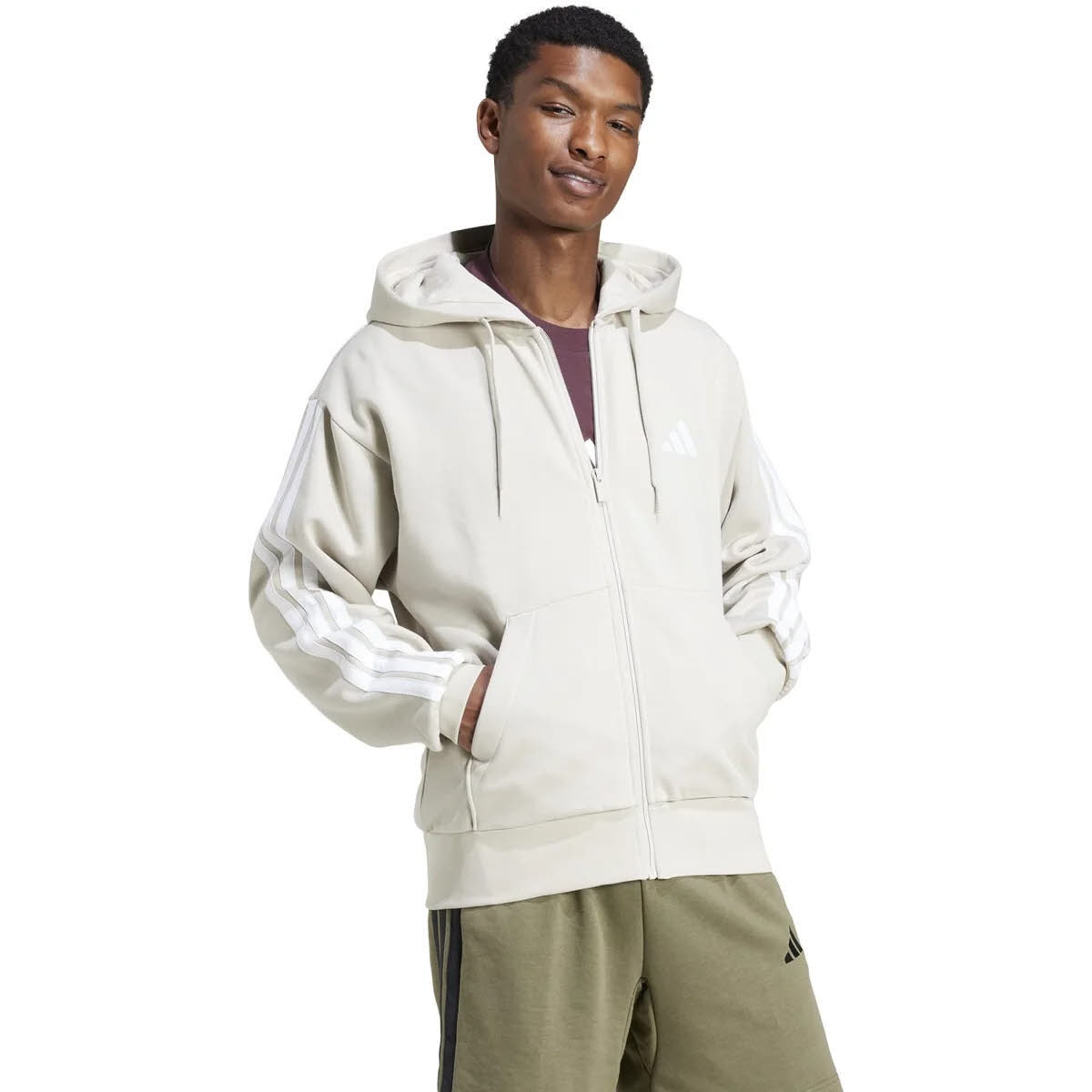 Produktinformationen "adidas M 3S FL FZ HD Herren Kapuzenjacke beige"