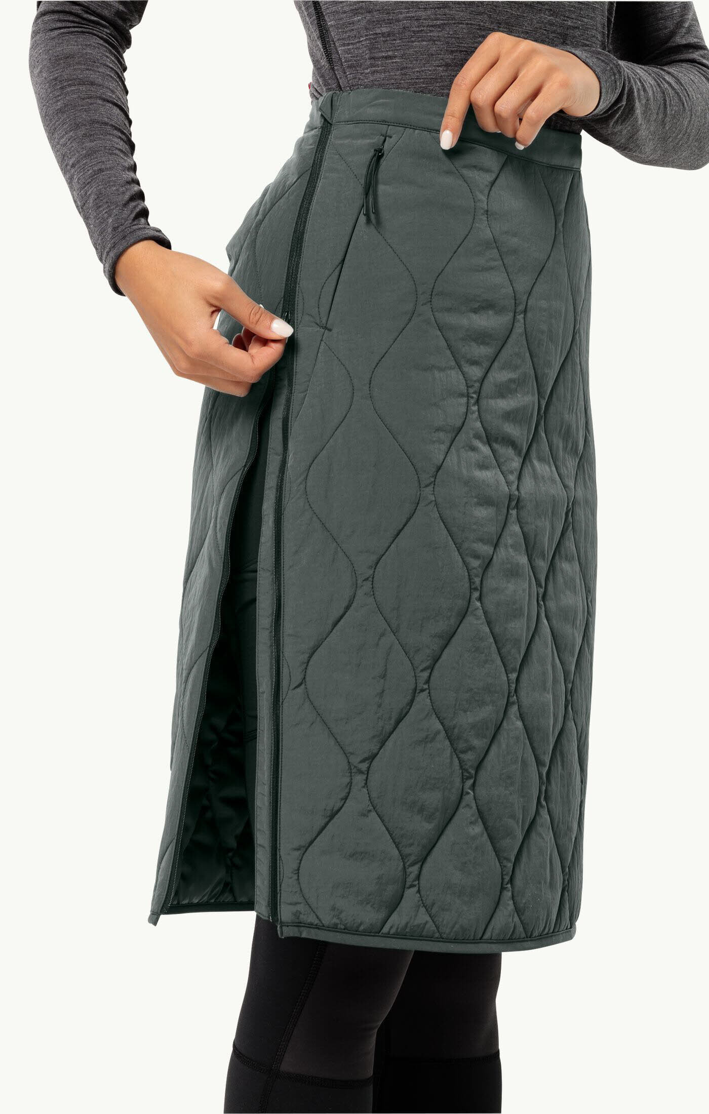 Das moderne Zwiebel-Steppmuster verleiht dem schlichten WANDERMOOD SKIRT einen individuellen Look. Mit dem winddichten, wasserabweisenden TEXASHIELD Material bietet der Rock zuverlässigen Wetterschutz und bleibt dennoch atmungsaktiv. Die hochwertige PRIMALOFT® Kunstfaserfüllung liefert angenehme Wärme und ein durchgehender seitlicher Reißverschluss ermöglicht schnelles, unkompliziertes An- und Ausziehen.