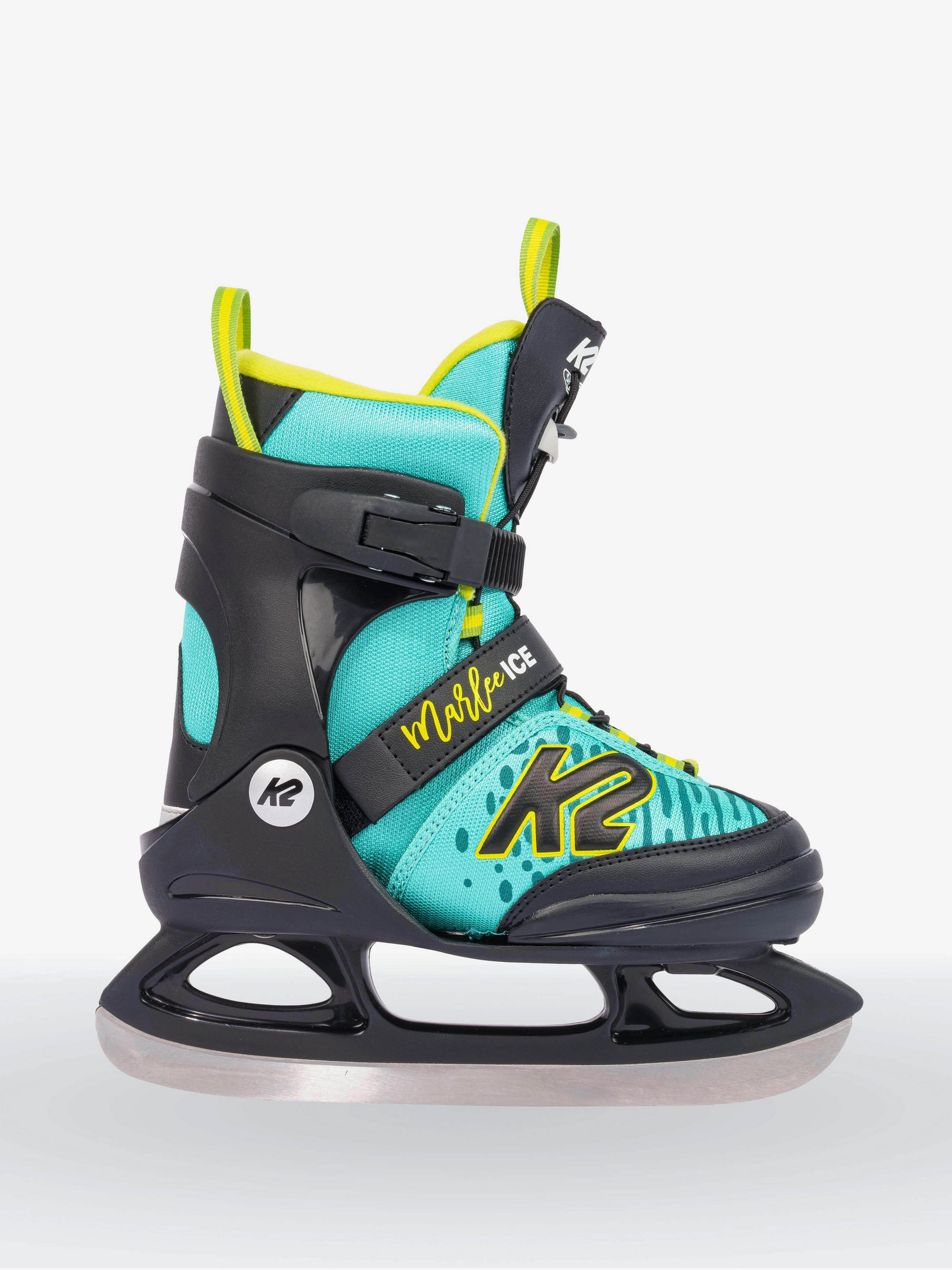 Der K2 Marlee Ice Skate wächst mit dem Fuß des Kindes: dank der Möglichkeit, ihn um mehrere Größen zu verstellen, ist der jährliche Kauf neuer Skates nicht mehr nötig. Mit seiner Kufenhalterung ist ein tieferer Schwerpunkt und damit eine verbesserte Stabilität gegeben. Der Skate bietet dank des K2 Softboot und des Junior Cuffs ein Maximum an Komfort und Unterstützung. Wasserabweisende Materialien und ein warmes Innenfutter halten kleine Füße trocken und warm während das Kind den ganzen Tag skaten kann. Das K2 Speed Lacing sorgt dafür, dass die Handschuhe nicht ausgezogen werden müssen, um den Skate fest zu schnüren. Kinderleicht, warm, trocken, ohne Einbußen bei Comfort oder Fahrspaß. Das ist der Marlee Ice!