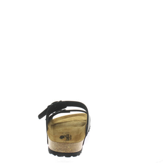 Fußbett Pantolette von Longo in schwarz. Obermaterial aus Flor, Fußbett aus Leder, Sohle aus Gummi.
