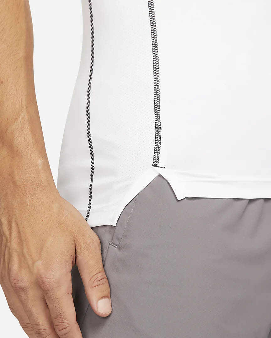Das Nike Pro Dri-FIT Oberteil sorgt mit leichtem Material und Atmungsaktivität in Hitzezonen für kühlen, trockenen Tragekomfort beim Aufwärmen und Abkühlen. Das elastische Material besteht aus mindestens 75 % recycelter Polyesterfaser in einer engen Passform, die sich ideal für Lagenlooks eignet.