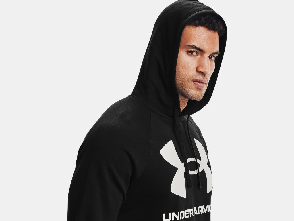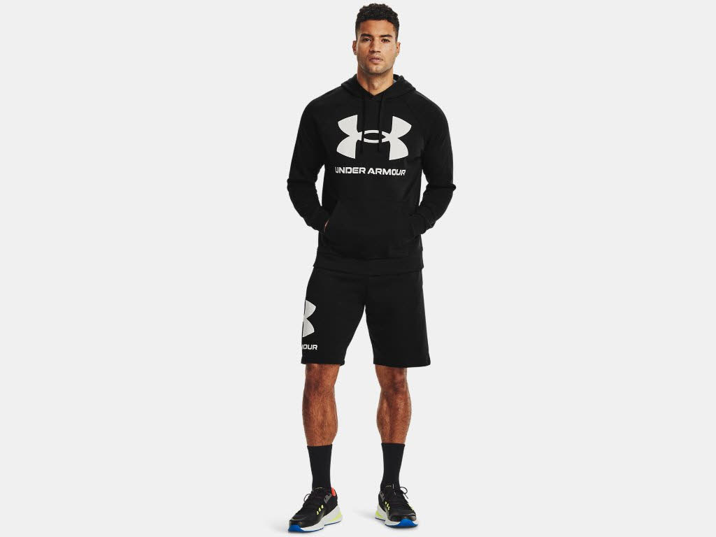 Under Armour UA Rival Fleece Big Logo HD Herren Hoodie Kapuzenpullover Schwarz NEU