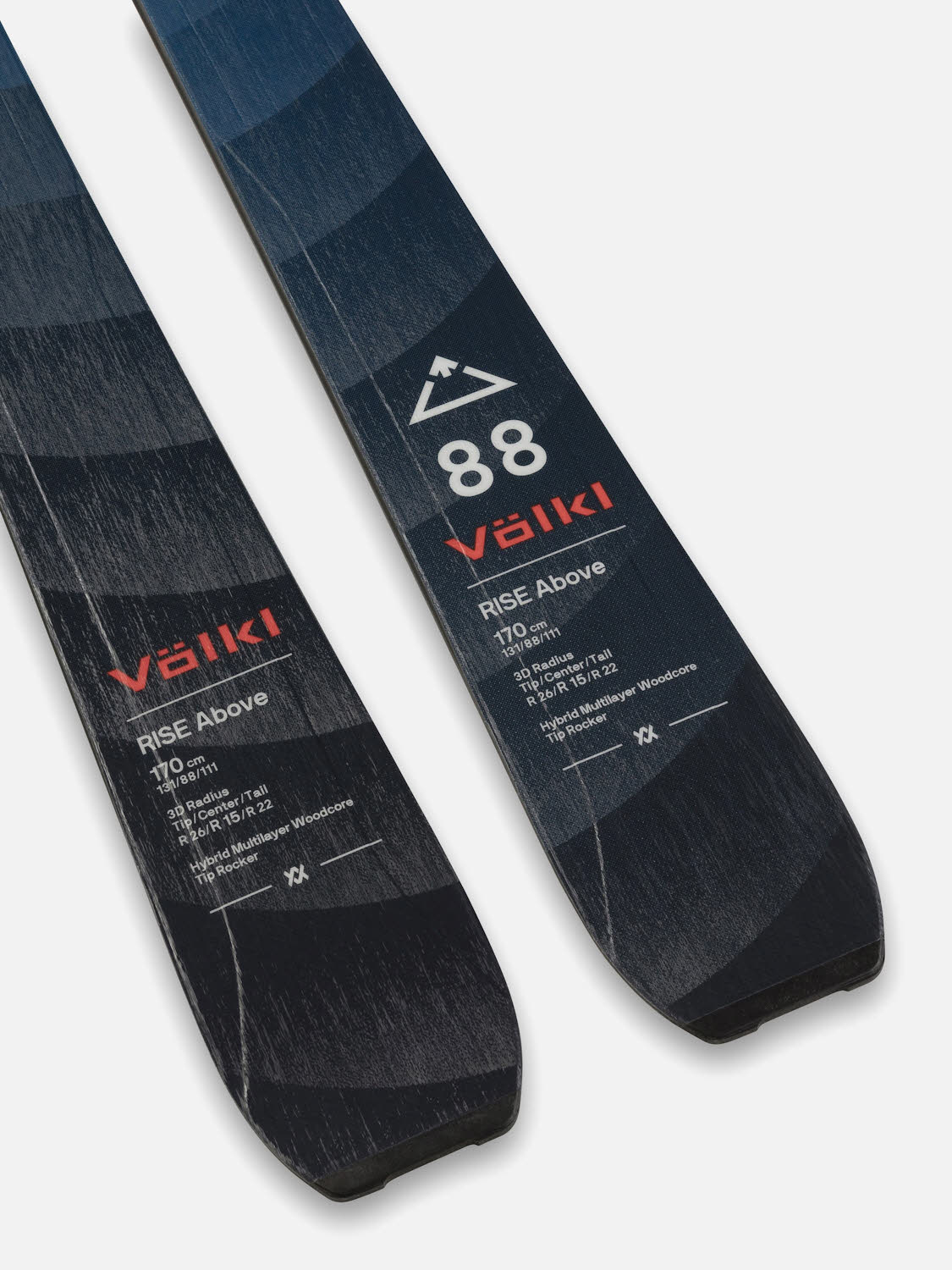 Der Rise Above 88 mit 3D-Radius-Sidecut ist der vielseitigste Ski in der neuen Touring-Linie. Seine Stärken liegen sowohl in der Aufstiegs- als auch in der Abfahrts-Performance. Der mehrschichtige Holzkern mit Isocore sorgt für ein geringes Gewicht (1.186 g bei 170 cm Länge), sowie für Stabilität und Laufruhe. Insbesondere bei windverblasenen Verhältnissen punktet die äußerst störungsunanfällige Schaufel der 3D-Radius-Bauweise. Die Seitenzug-Geometrie sorgt für größtmögliche Lebendigkeit sowie Wendigkeit in engen Passagen, während die durchgängige Seitenwange gute Stabilität und Belastbarkeit liefert. Die Kombination aus ausgeprägter Taillierung unter dem Fuß und moderater Taillierung im Schaufel- und Enden-Bereich sorgt für erhöhte Kontrolle und erfordert weniger Krafteinsatz auch auf Touren mit schwerem Gepäck.